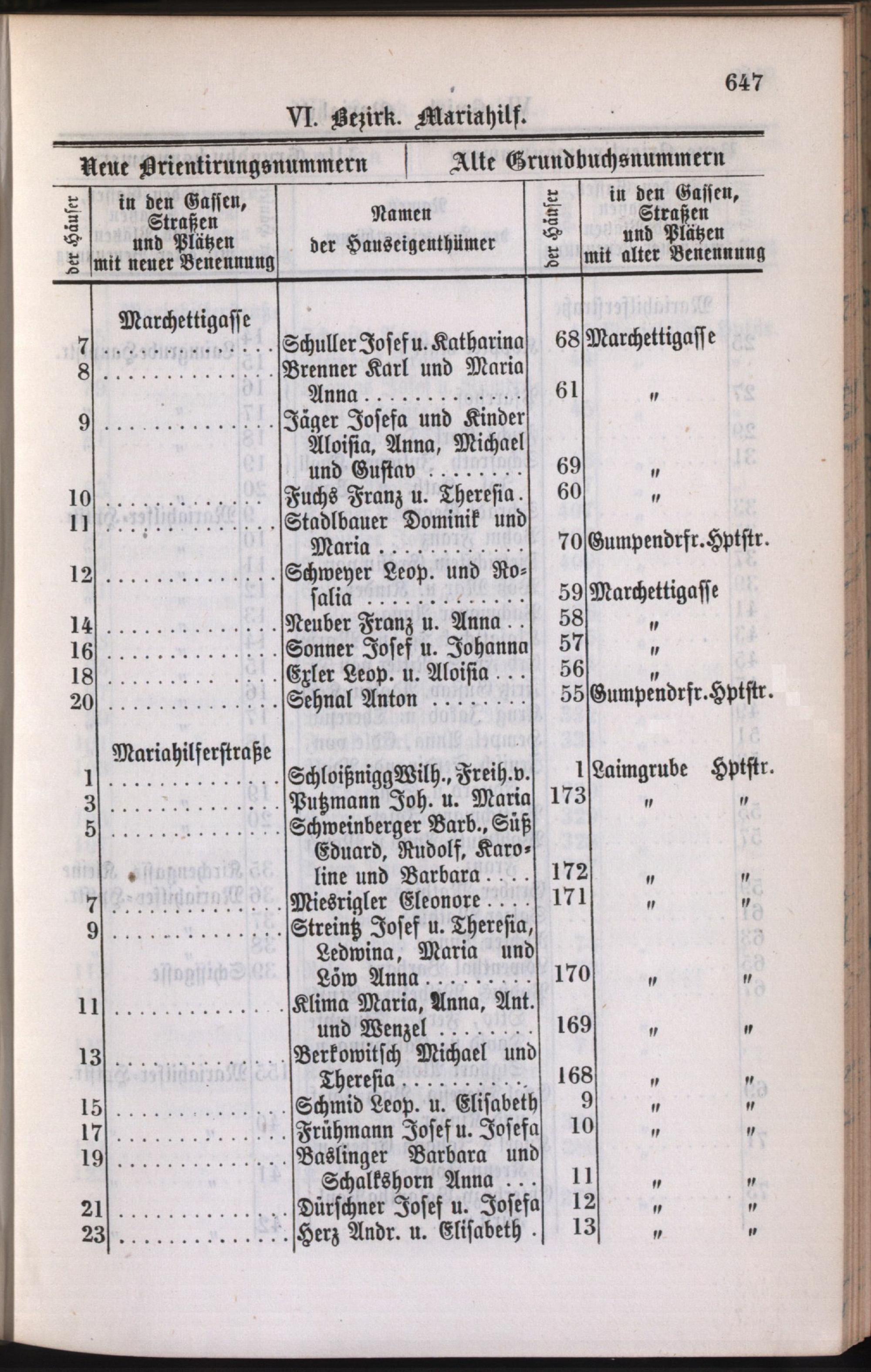 6: Mariahilf : Nachweis der alten und neuen Benennungen der Gassen, Straßen und Plätze in alphabetischer Ordnung