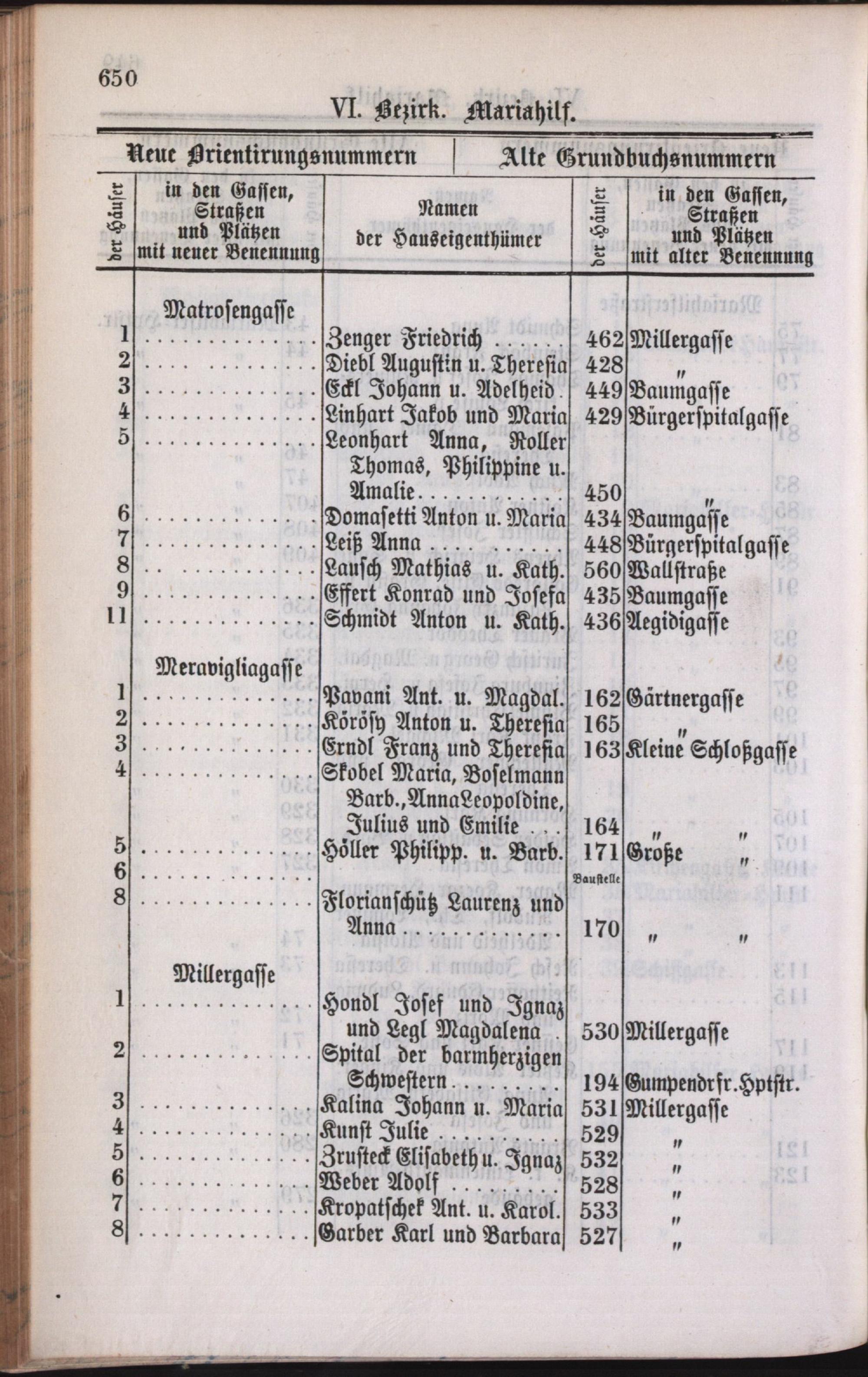 6: Mariahilf : Nachweis der alten und neuen Benennungen der Gassen, Straßen und Plätze in alphabetischer Ordnung