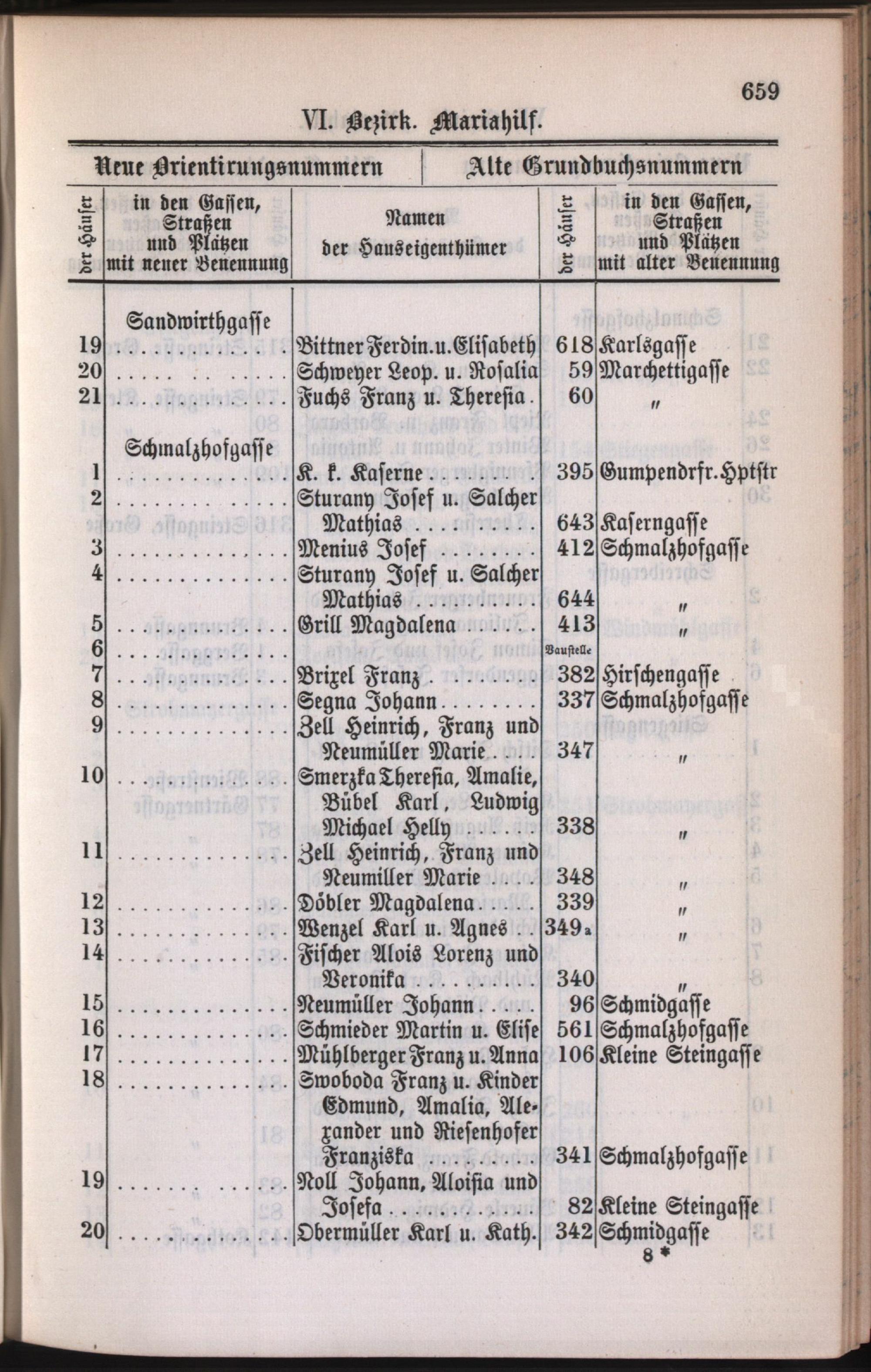 6: Mariahilf : Nachweis der alten und neuen Benennungen der Gassen, Straßen und Plätze in alphabetischer Ordnung