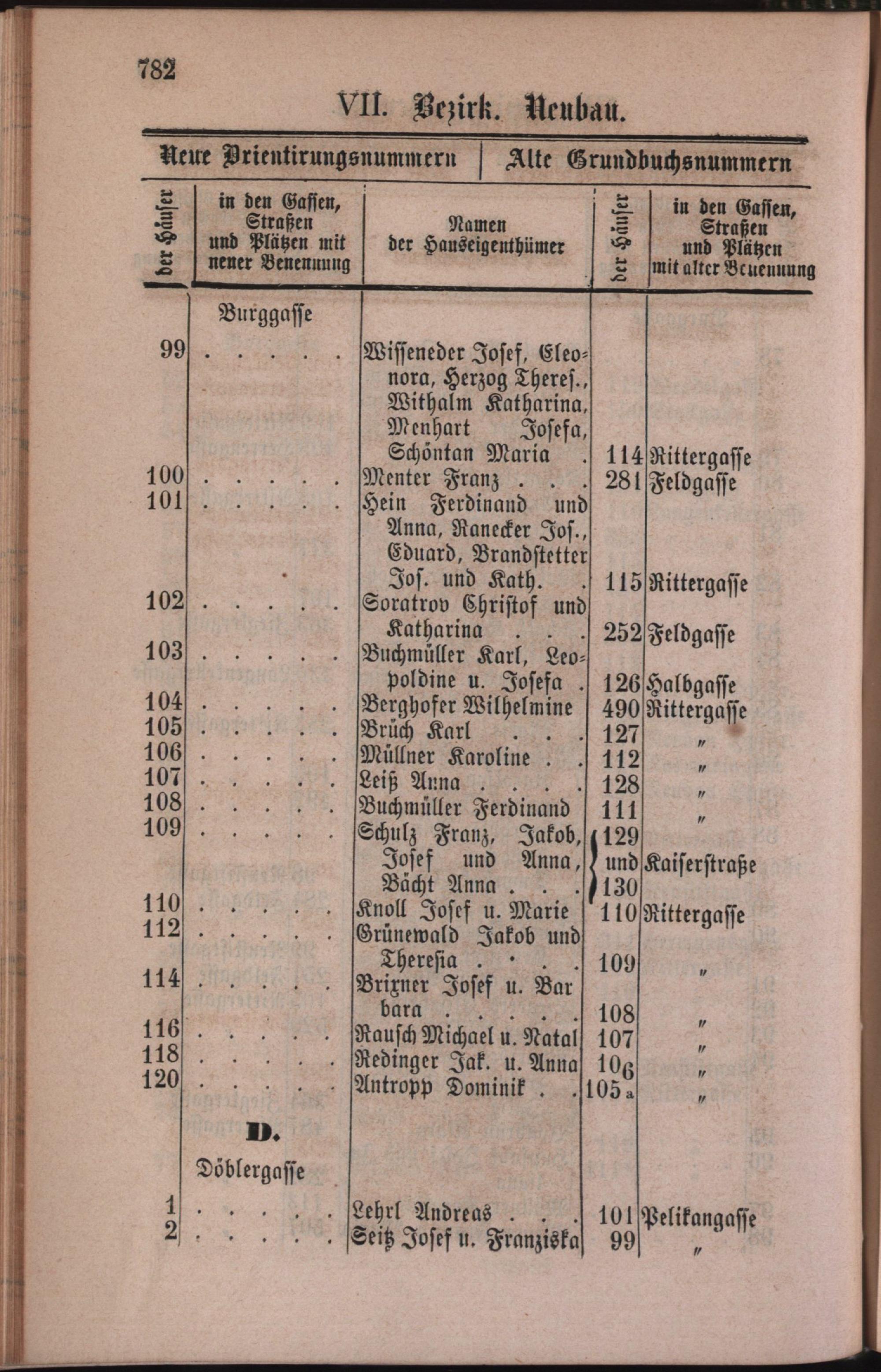 7: Neubau : Nachweis der alten und neuen Benennungen der Gassen, Straßen und Plätze in alphabetischer Ordnung