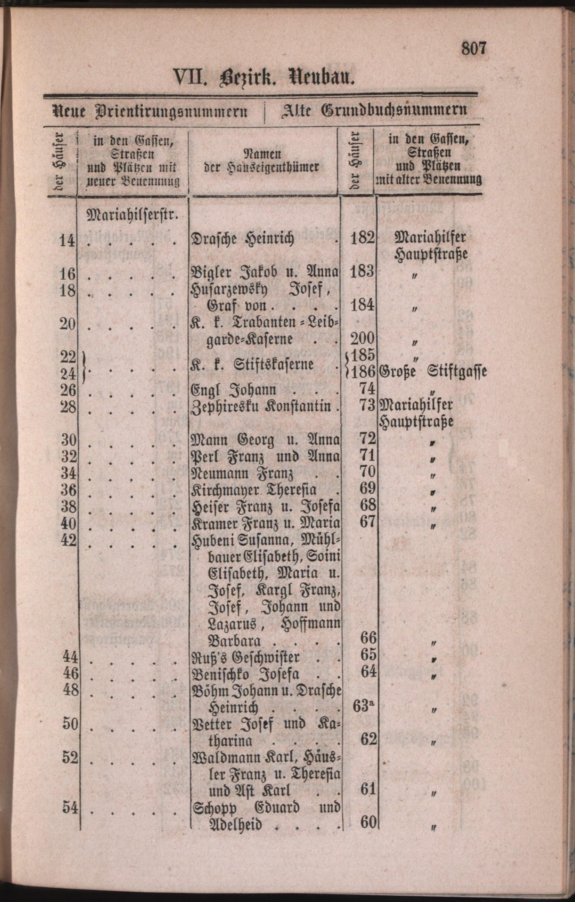 7: Neubau : Nachweis der alten und neuen Benennungen der Gassen, Straßen und Plätze in alphabetischer Ordnung