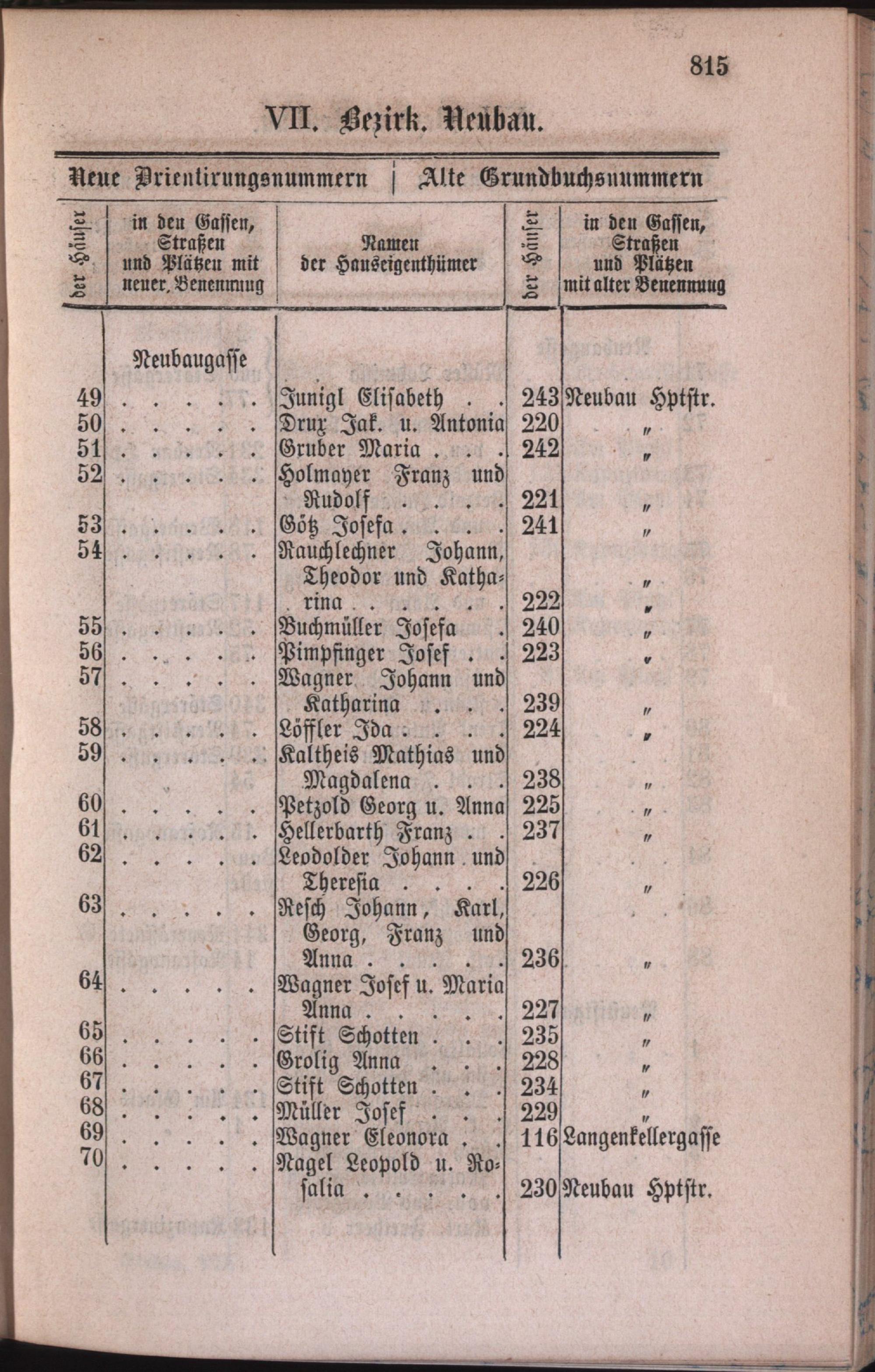 7: Neubau : Nachweis der alten und neuen Benennungen der Gassen, Straßen und Plätze in alphabetischer Ordnung