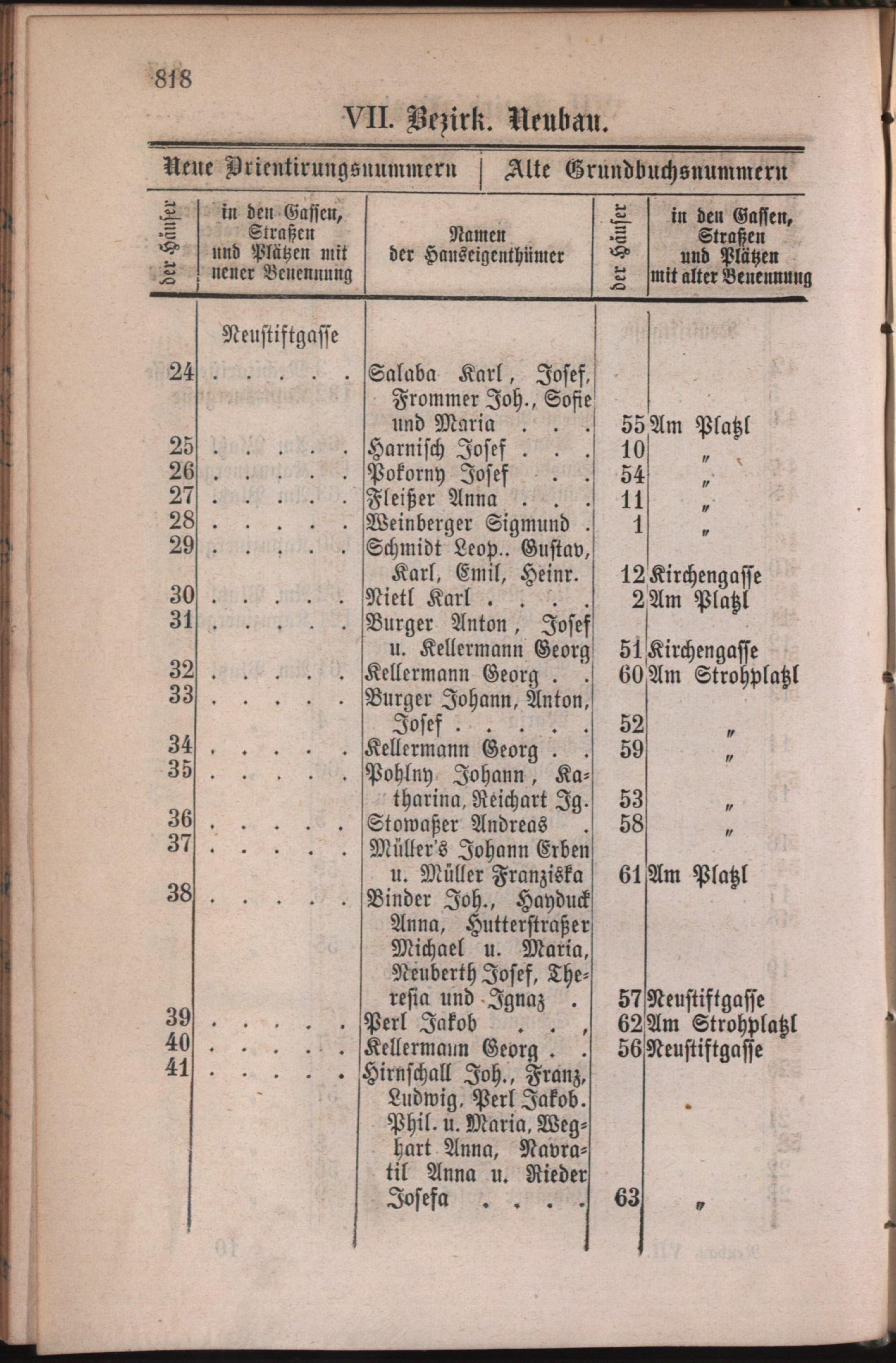 7: Neubau : Nachweis der alten und neuen Benennungen der Gassen, Straßen und Plätze in alphabetischer Ordnung