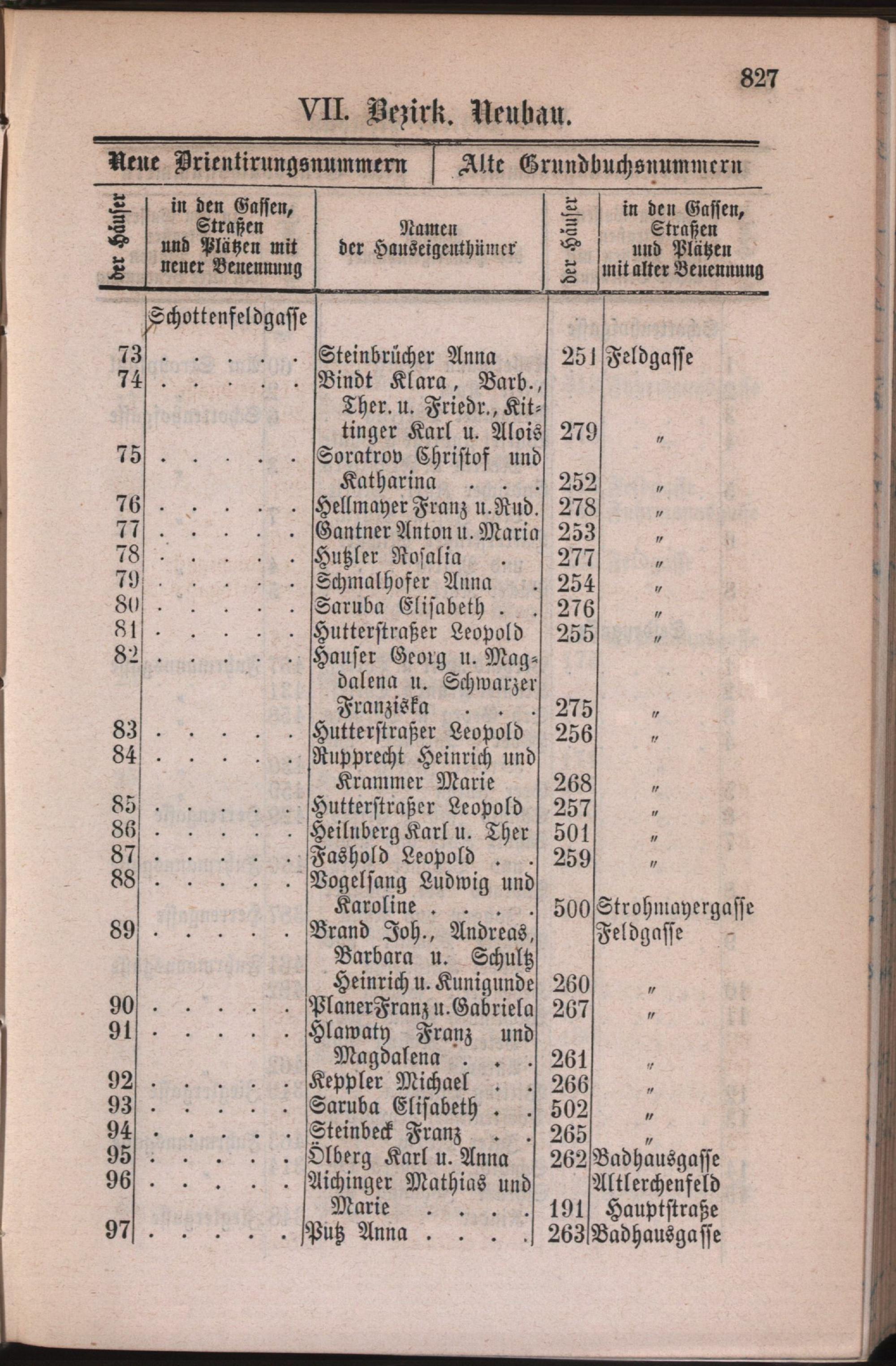 7: Neubau : Nachweis der alten und neuen Benennungen der Gassen, Straßen und Plätze in alphabetischer Ordnung