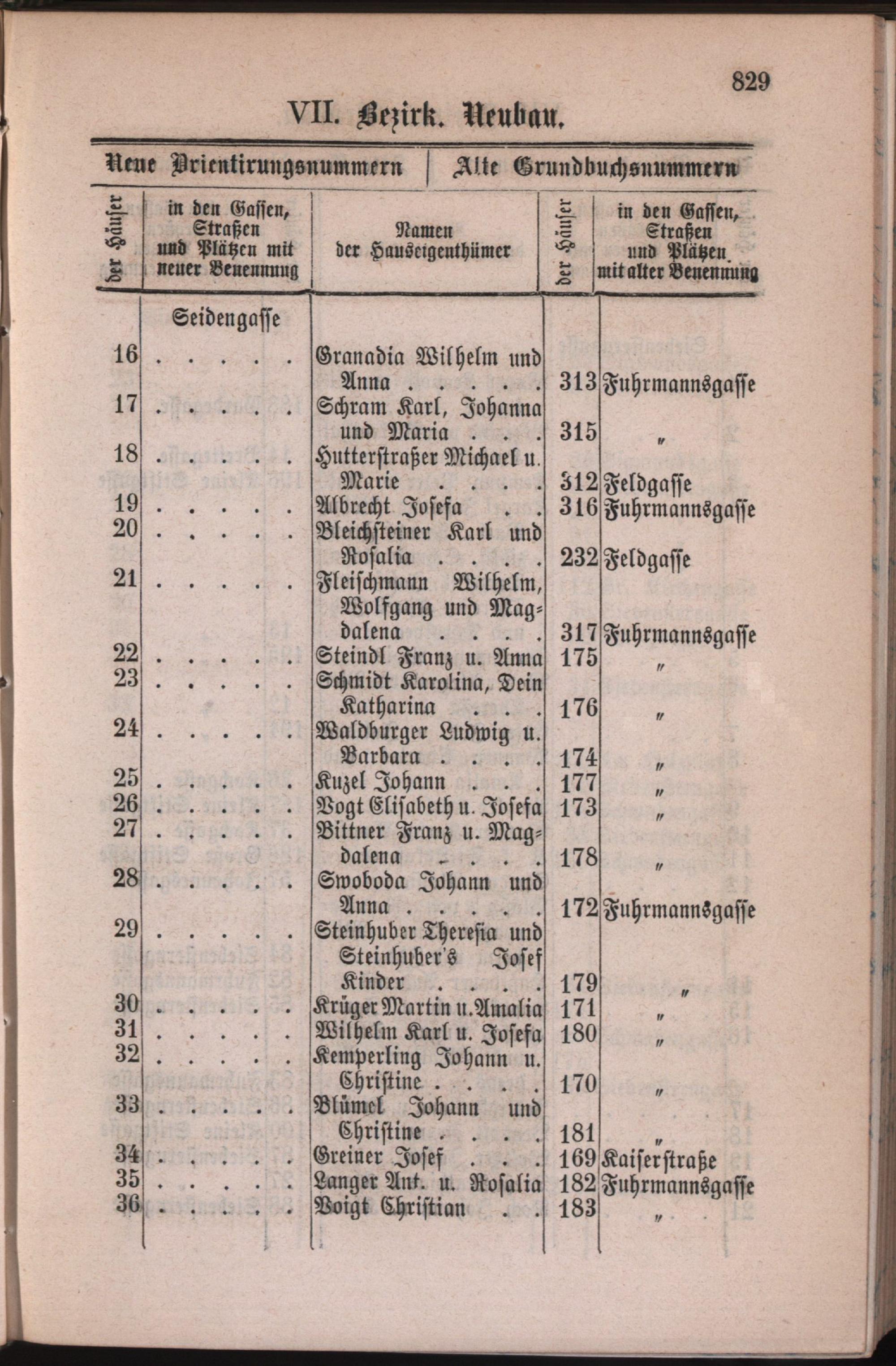 7: Neubau : Nachweis der alten und neuen Benennungen der Gassen, Straßen und Plätze in alphabetischer Ordnung