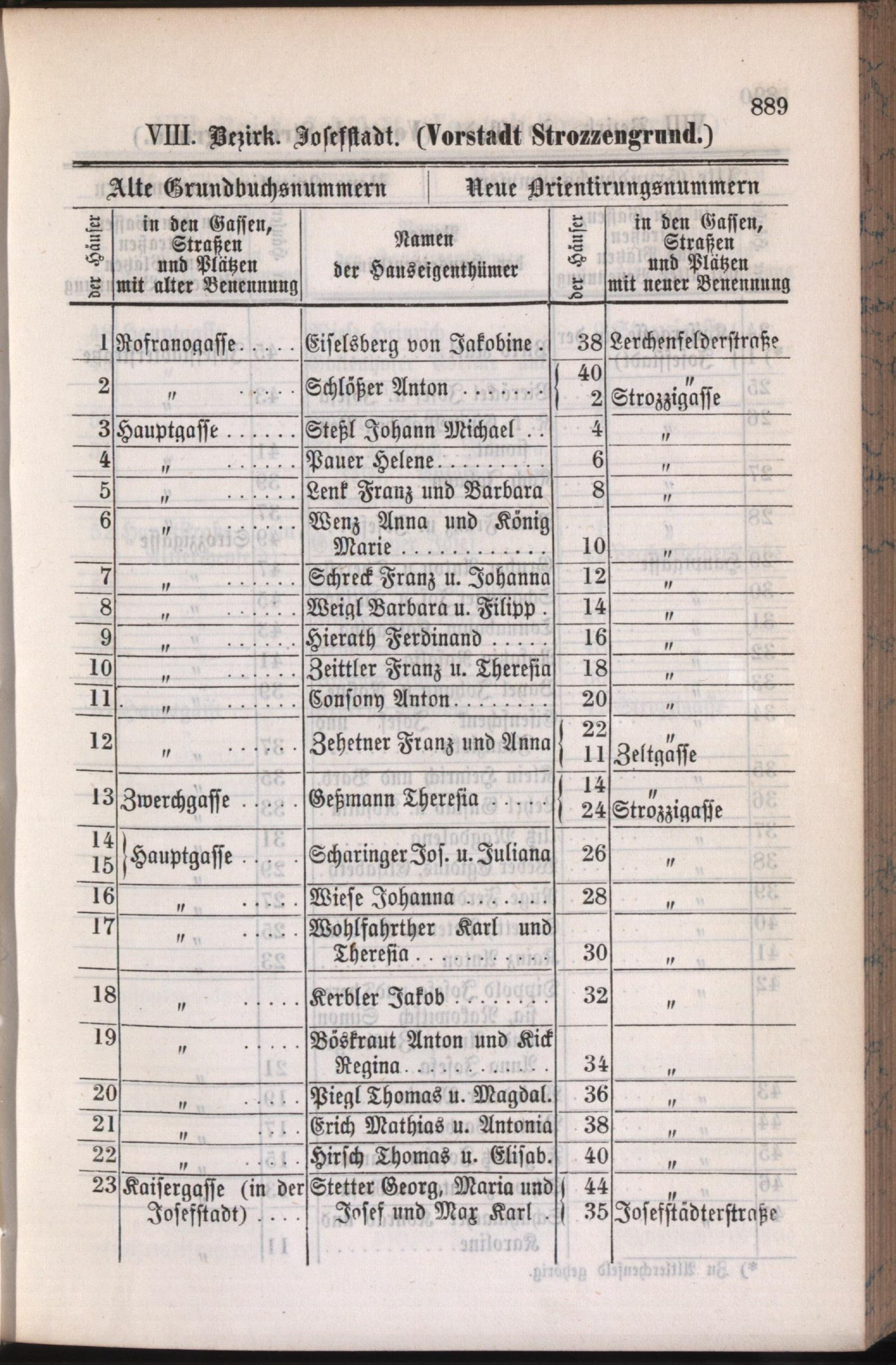 8: Josefstadt : Nachweis der alten und neuen Benennungen der Gassen, Straßen und Plätze in alphabetischer Ordnung