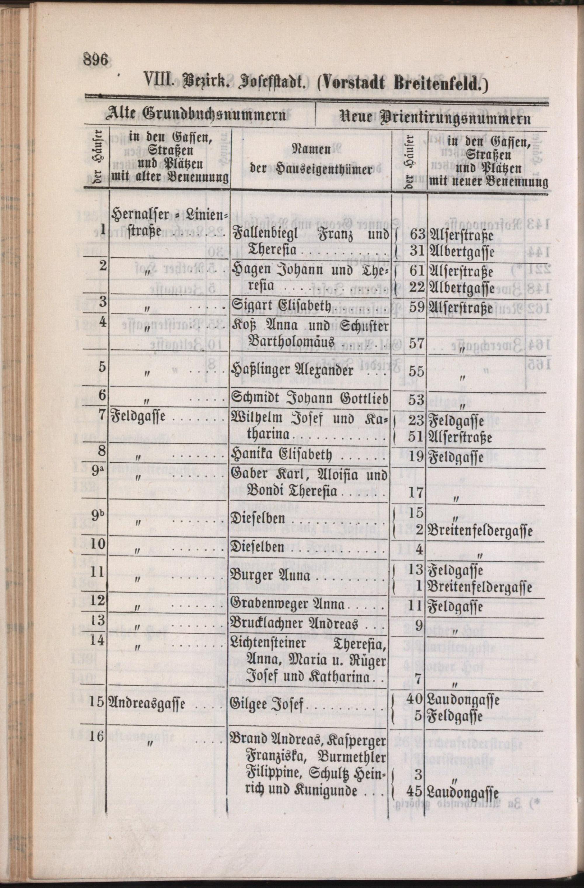 8: Josefstadt : Nachweis der alten und neuen Benennungen der Gassen, Straßen und Plätze in alphabetischer Ordnung