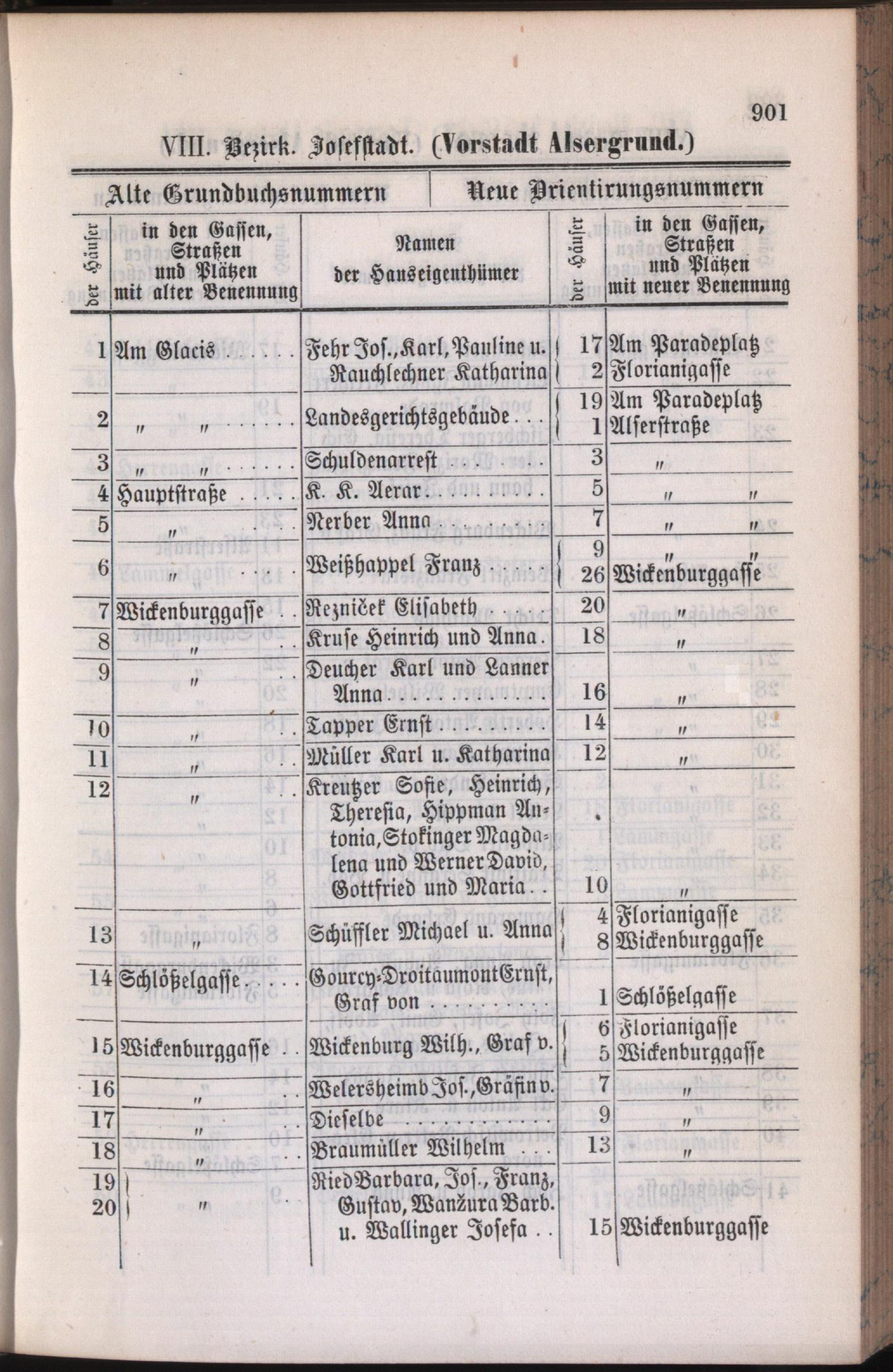 8: Josefstadt : Nachweis der alten und neuen Benennungen der Gassen, Straßen und Plätze in alphabetischer Ordnung