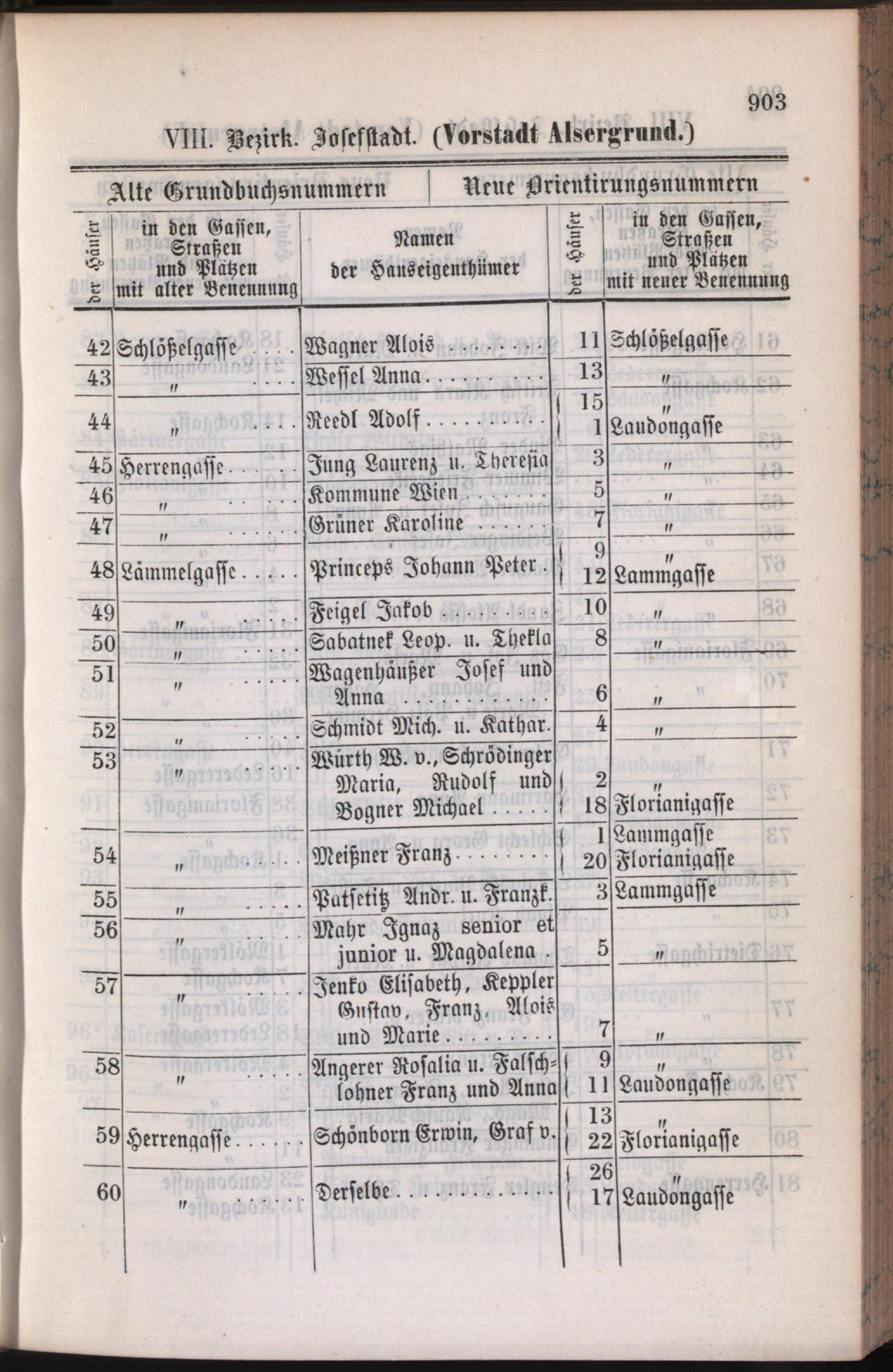 8: Josefstadt : Nachweis der alten und neuen Benennungen der Gassen, Straßen und Plätze in alphabetischer Ordnung