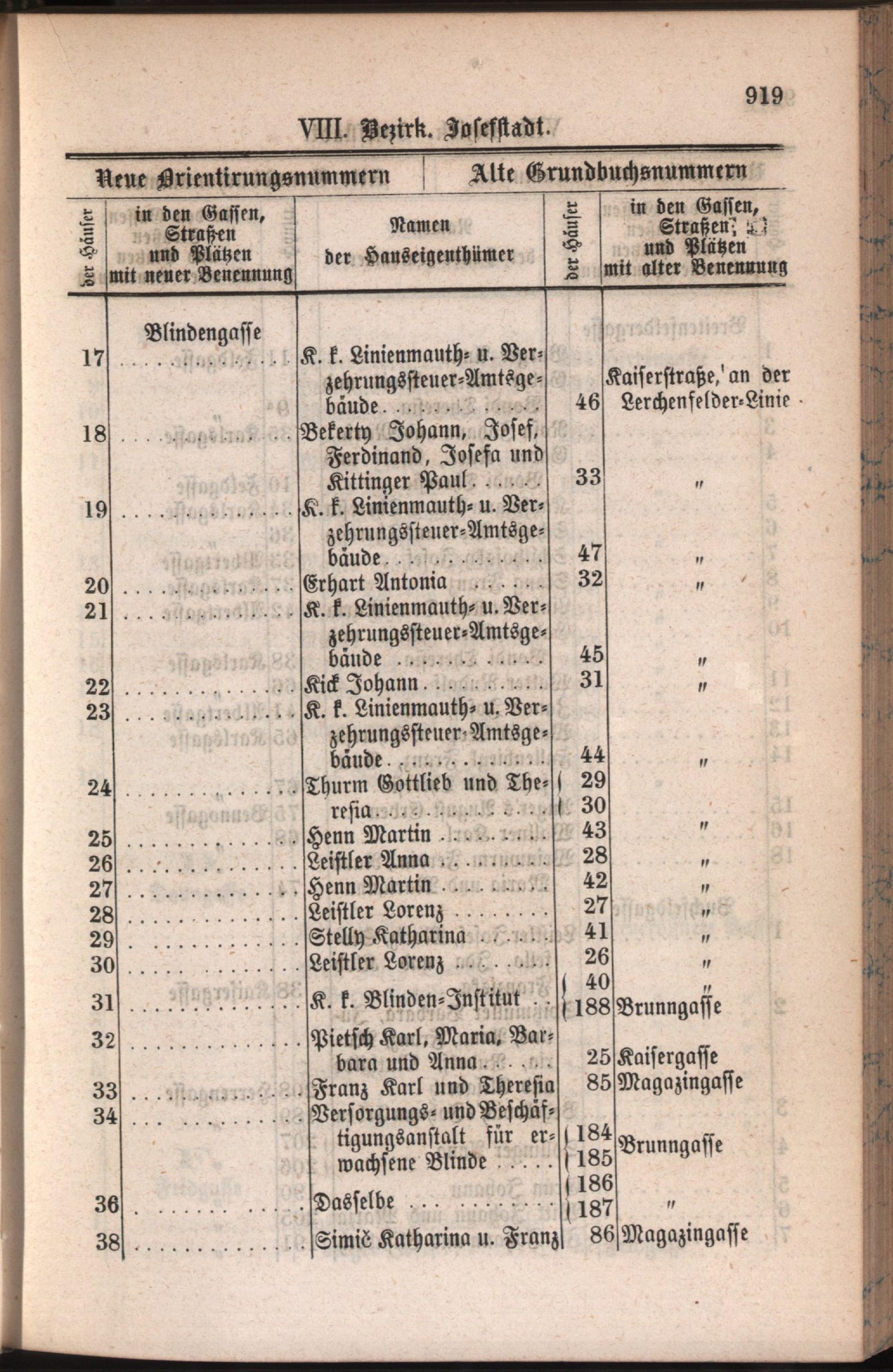 8: Josefstadt : Nachweis der alten und neuen Benennungen der Gassen, Straßen und Plätze in alphabetischer Ordnung