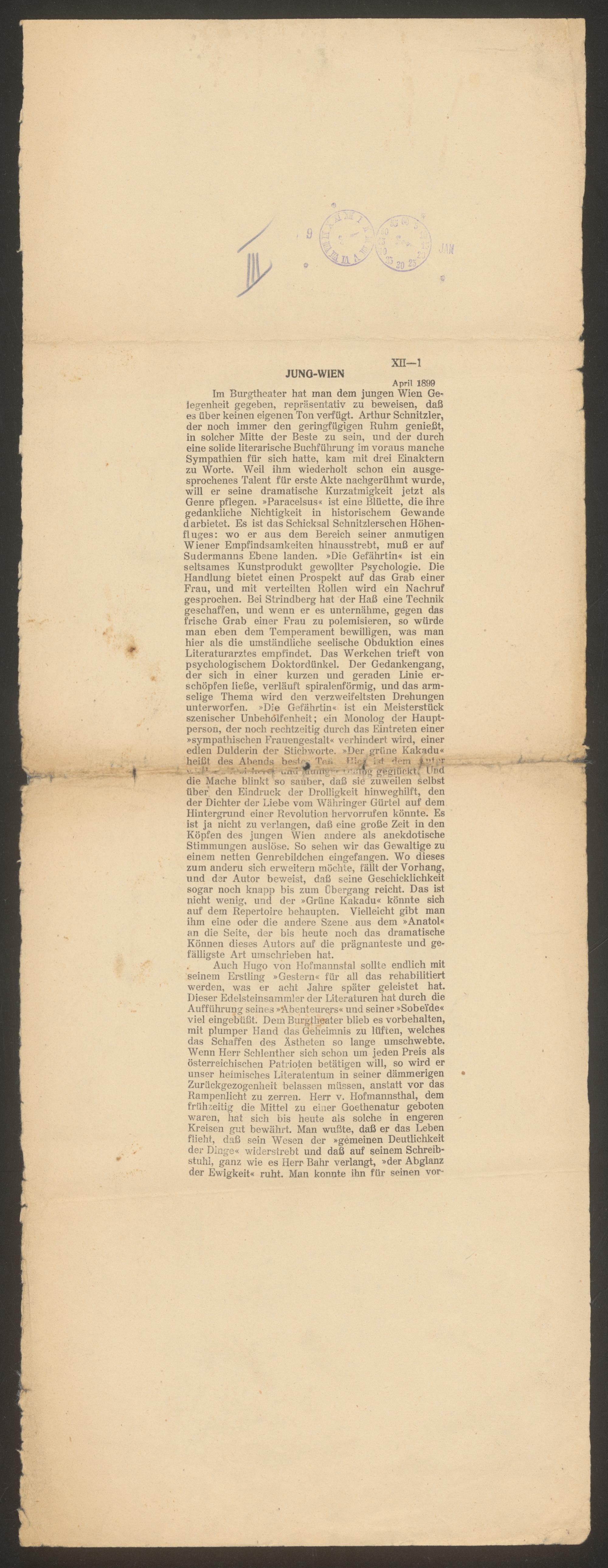 Manuskripte, Druck- und Korrekturfahnen und anderes Material zu "Kultur und Presse"