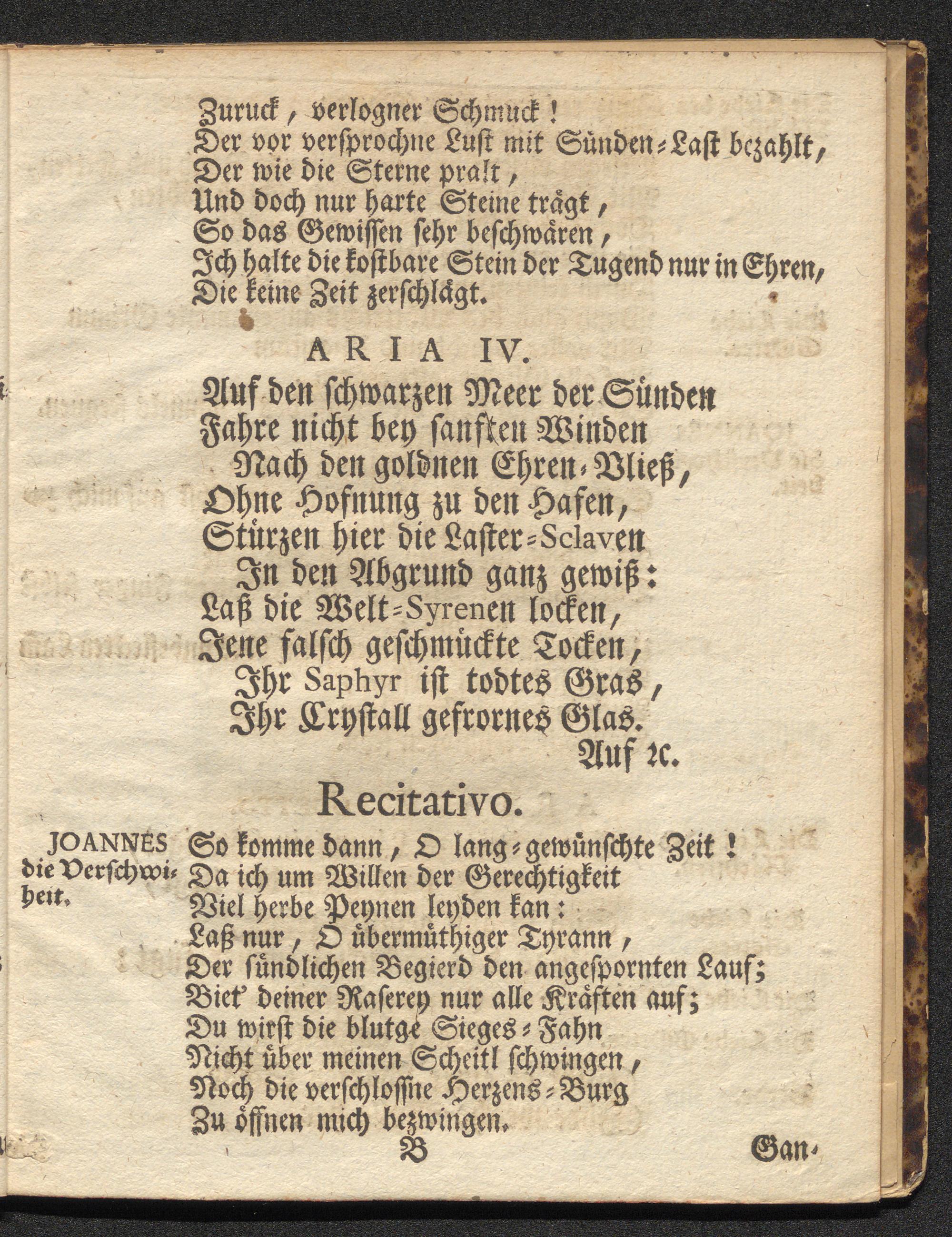 Das In Fever nie Verzehrte In Den Wasser Vnversehrte Sigill Der Verschwiegenheit : Oder Der nach Glorreich aus Liebe Gottes und des Nächsten überwundenen Tyranney, und Siegreich vollendeten Marter-Kampf mit der Crone der Gerechtigkeit herrlich gecrönte wunderthätige Blut-Zeug Jesu Christi Heil. Johann von Nepomuck, In einem musicalischen Oratorio bey Hoch-feyerlicher Begehung dessen jährlichen Festivität in der Uralten regulirten Pfarr-Kirchen und hochlöbl. Stift bey Unser Lieben Frauen zum Schotten alhier Den 25. Junii nachmittag um 4 Uhr vorgestellet / In die Poêsie verfasset von Hrn. Antonio Ulbrich, Kays. Hof-Musico. In die Music gesetzt von Hrn. Josepho Antonio Stephan
