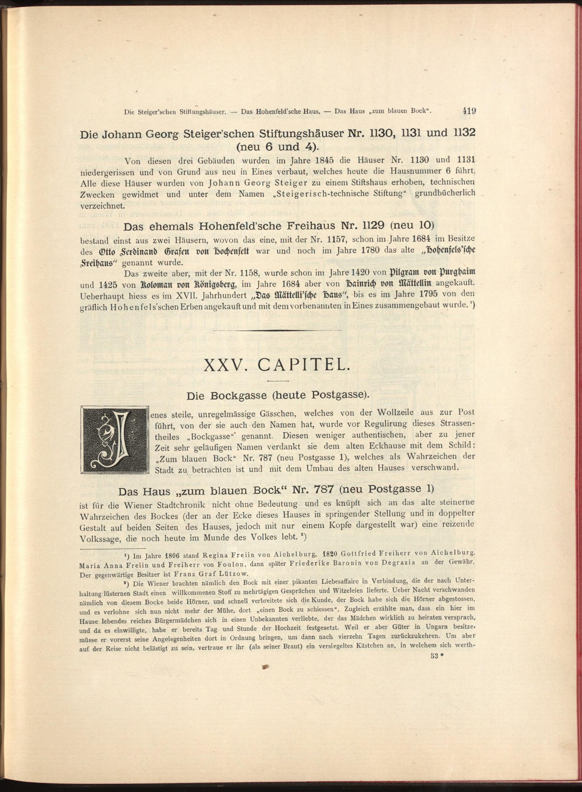 Die alten Strassen und Plaetze Wien's und ihre historisch interessanten Haeuser : ein Beitrag zur Culturgeschichte Wiens mit Rücksicht auf die vaterlændische Kunst, Architektur, Musik und Literatur / von Wilhelm Kisch