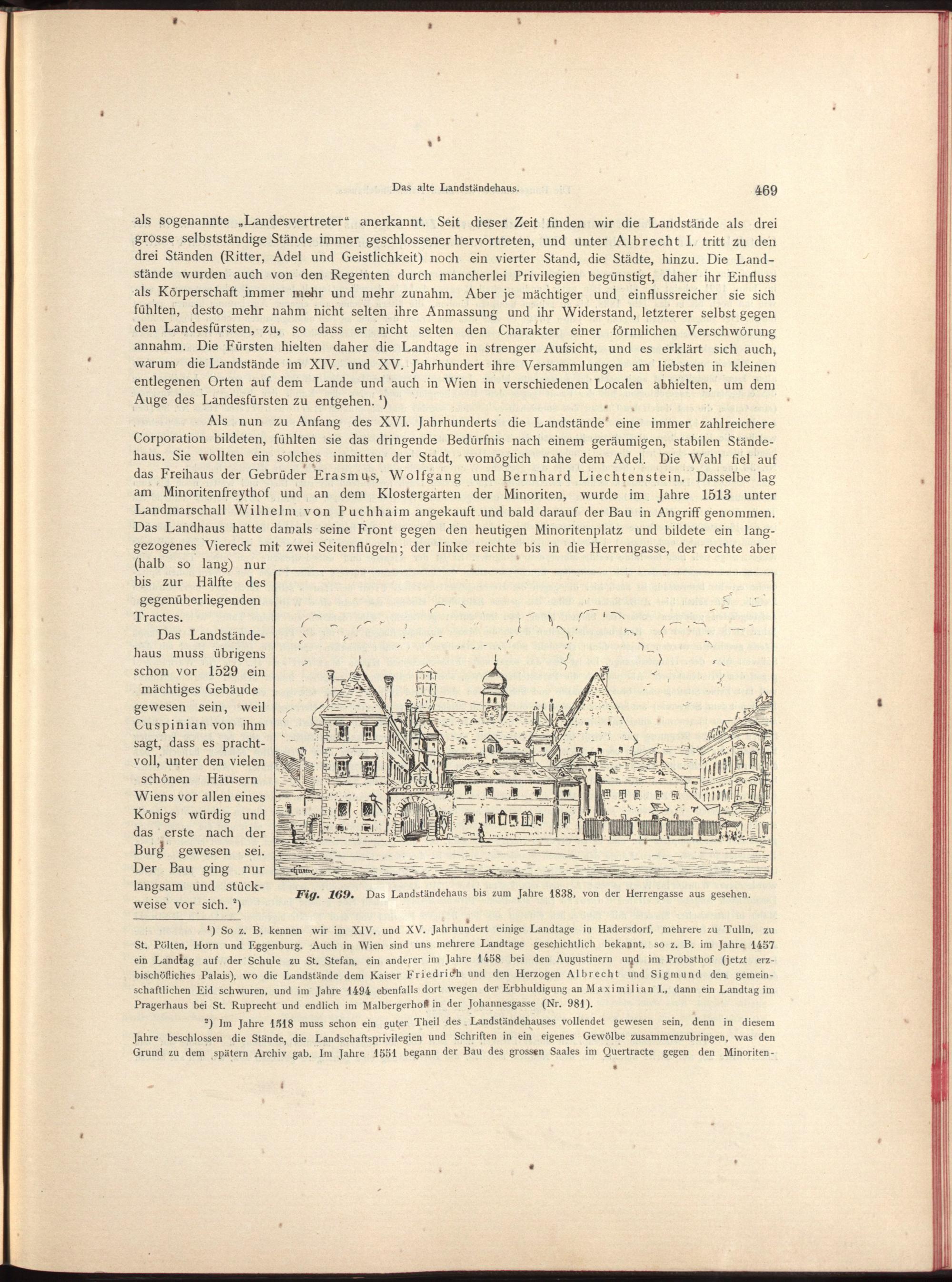 Die alten Strassen und Plaetze Wien's und ihre historisch interessanten Haeuser : ein Beitrag zur Culturgeschichte Wiens mit Rücksicht auf die vaterlændische Kunst, Architektur, Musik und Literatur / von Wilhelm Kisch