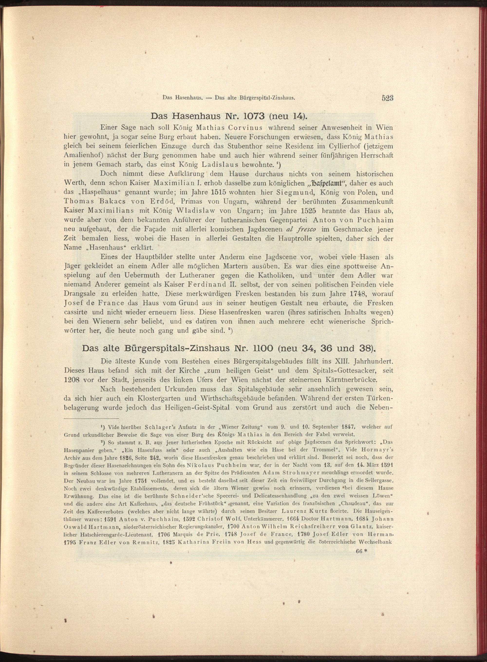 Die alten Strassen und Plaetze Wien's und ihre historisch interessanten Haeuser : ein Beitrag zur Culturgeschichte Wiens mit Rücksicht auf die vaterlændische Kunst, Architektur, Musik und Literatur / von Wilhelm Kisch