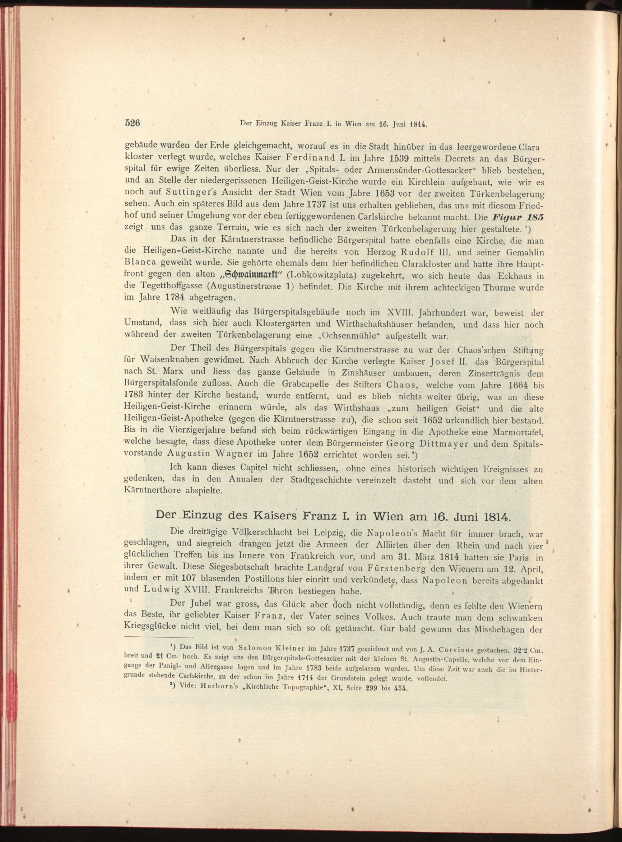 Die alten Strassen und Plaetze Wien's und ihre historisch interessanten Haeuser : ein Beitrag zur Culturgeschichte Wiens mit Rücksicht auf die vaterlændische Kunst, Architektur, Musik und Literatur / von Wilhelm Kisch