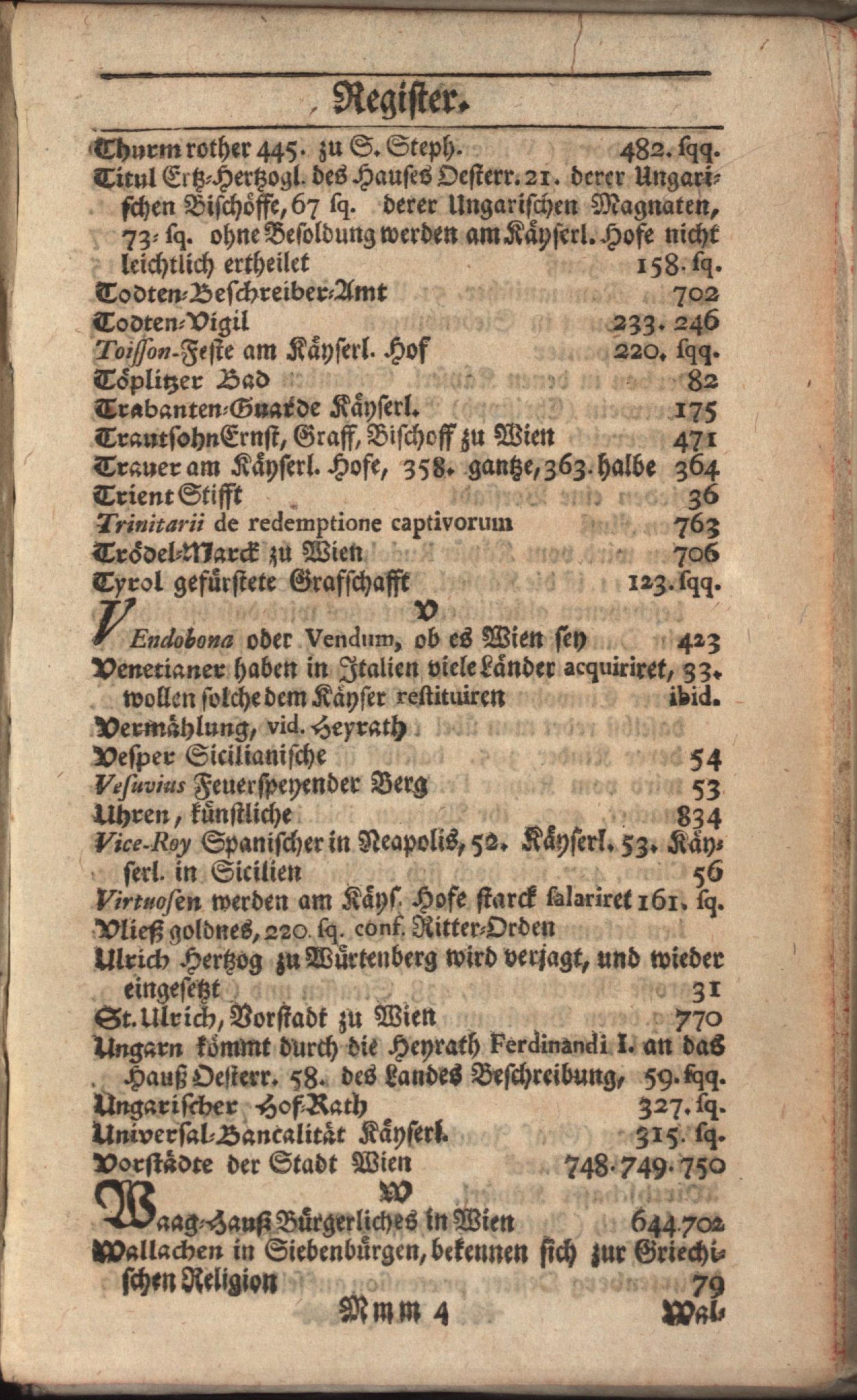 Johann Basilii Kuchelbeckers allerneueste Nachricht vom Römisch-Käyserlichen Hofe : nebst einer ausführlichen historischen Beschreibung der kayserlichen Residentz-Stadt Wien, und der umliegenden Oerter, theils aus den Geschichten, theils aus eigener Erfahrung zusammen getragen und mit saubern Kupffern ans Licht gegeben