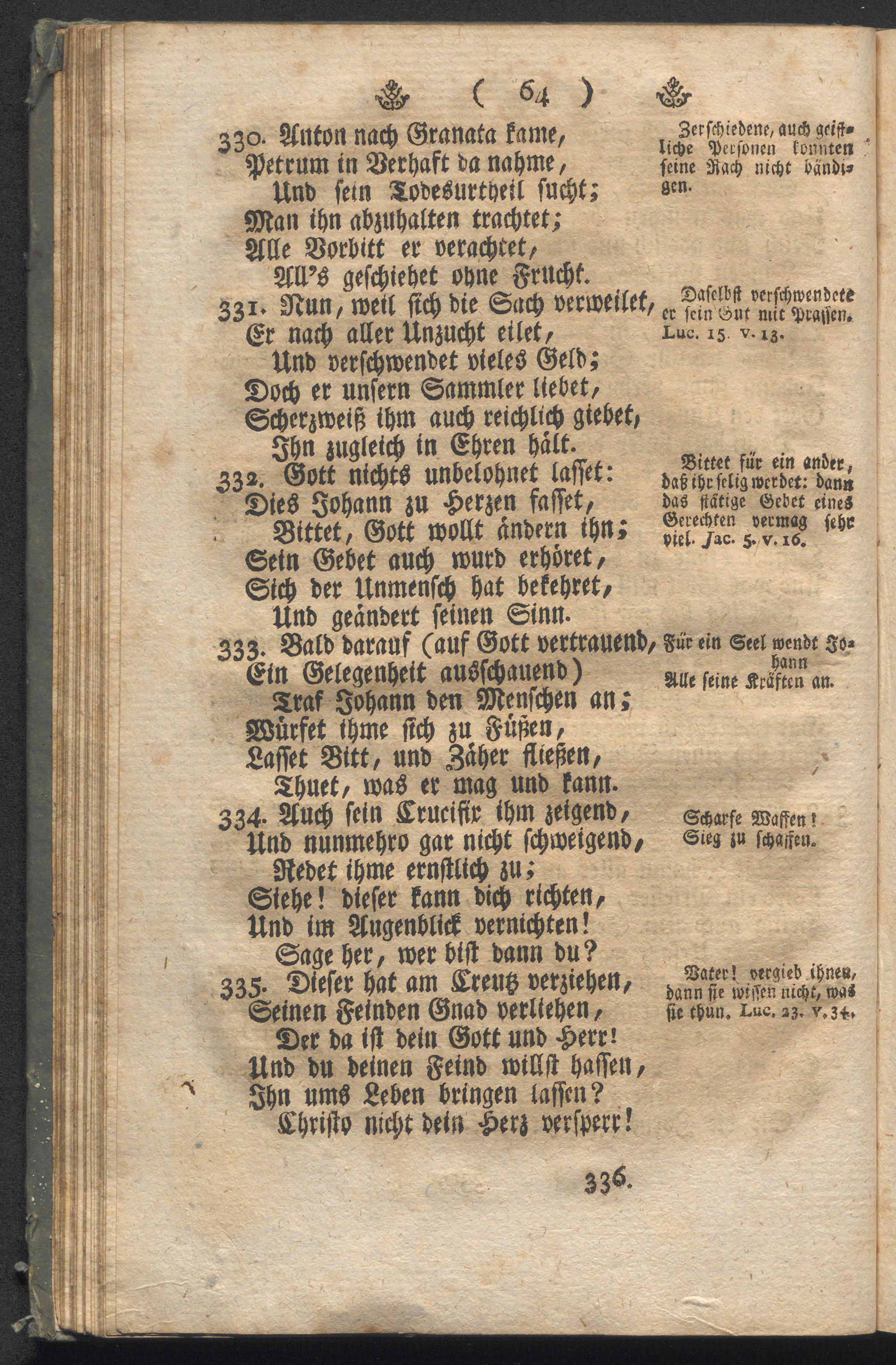 Anmüthig, und lehrreich in tausend mit allerhand Texten, Sprüchen, und Zugaben geziert, und versehenen Singgesätzen verfaßte Lebensbeschreibung des heilig, und liebreichen Vaters Joannis De Deo, wunderbaren Stiffters des sehr nutzlich, und heilbringenden Ordens der Barmherzigkeit in Bedienung der lieben, armen, und heilbaren Kranken, oder der so gemeiniglich genannten barmherzigen geistlichen Brüder / Zusammengesetzet, und in zwanzig Abtheilungen zertheilet von Fr. Patritio Wasserburger, dieses Ordens Professo