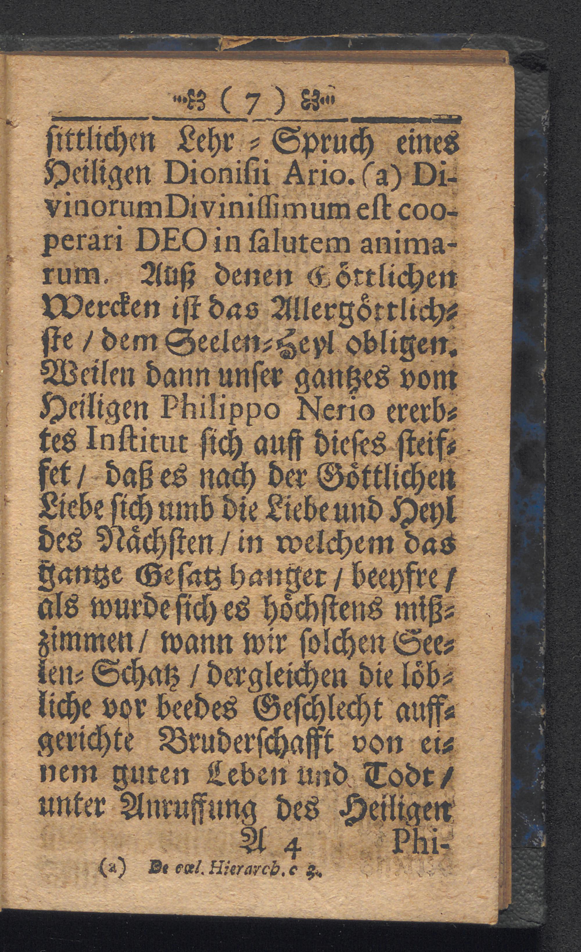 Neu - dargereichter Philippinischer Liebs-faden Krafft welchen die Christ-Glaubige durch einen frommen Lebens-Wandel zu einem glückseeligen Lebens-Außgang geleitet werden : Oder Kurtze Verzeichnuß der Löbl. Bruderschafft des Heiligen Philippi Nerii