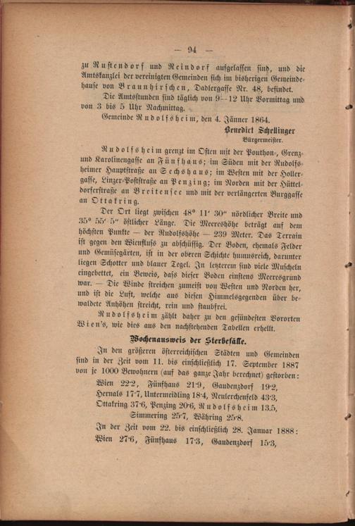 Rudolfsheim : Historisch-topographische Darstellung des Ortes nebst einem Rückblicke auf die geschichtliche Entwicklung der vor fünfundzwanzig Jahren zur Ortsgemeinde Rudolfsheim vereinigten Gemeinden Reindorf, Braunkirchen und Rustendorf. Festschrift aus Anlass des vierzigjährigen Regierungs-Jubiläums Sr. k. k. apostol. Majestät unseres allergnädigsten Kaisers und Herrn Franz Josef I. / Nach den besten Quellen bearbeitetvon Franz Echsel Lehrer