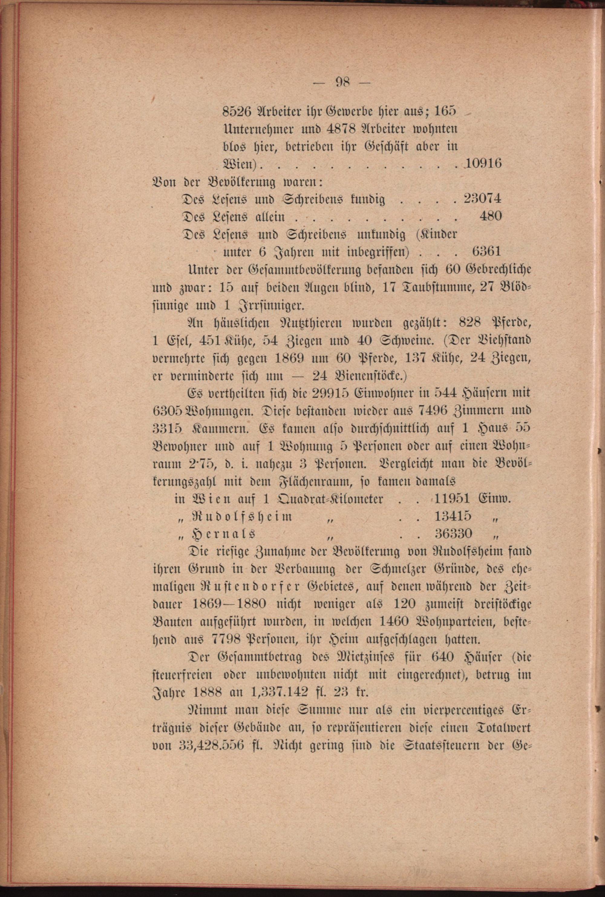 Rudolfsheim : Historisch-topographische Darstellung des Ortes nebst einem Rückblicke auf die geschichtliche Entwicklung der vor fünfundzwanzig Jahren zur Ortsgemeinde Rudolfsheim vereinigten Gemeinden Reindorf, Braunkirchen und Rustendorf. Festschrift aus Anlass des vierzigjährigen Regierungs-Jubiläums Sr. k. k. apostol. Majestät unseres allergnädigsten Kaisers und Herrn Franz Josef I. / Nach den besten Quellen bearbeitetvon Franz Echsel Lehrer