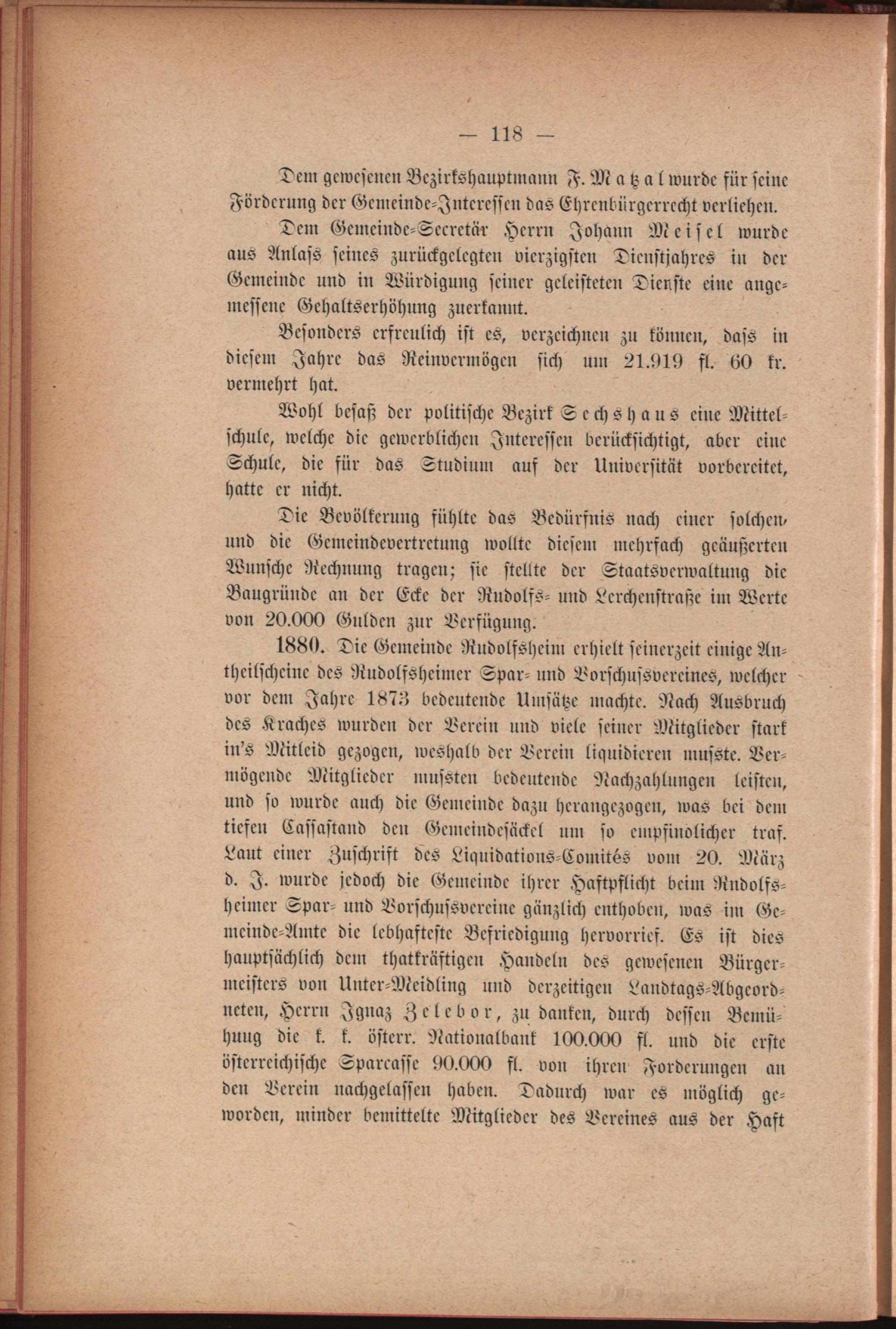 Rudolfsheim : Historisch-topographische Darstellung des Ortes nebst einem Rückblicke auf die geschichtliche Entwicklung der vor fünfundzwanzig Jahren zur Ortsgemeinde Rudolfsheim vereinigten Gemeinden Reindorf, Braunkirchen und Rustendorf. Festschrift aus Anlass des vierzigjährigen Regierungs-Jubiläums Sr. k. k. apostol. Majestät unseres allergnädigsten Kaisers und Herrn Franz Josef I. / Nach den besten Quellen bearbeitetvon Franz Echsel Lehrer