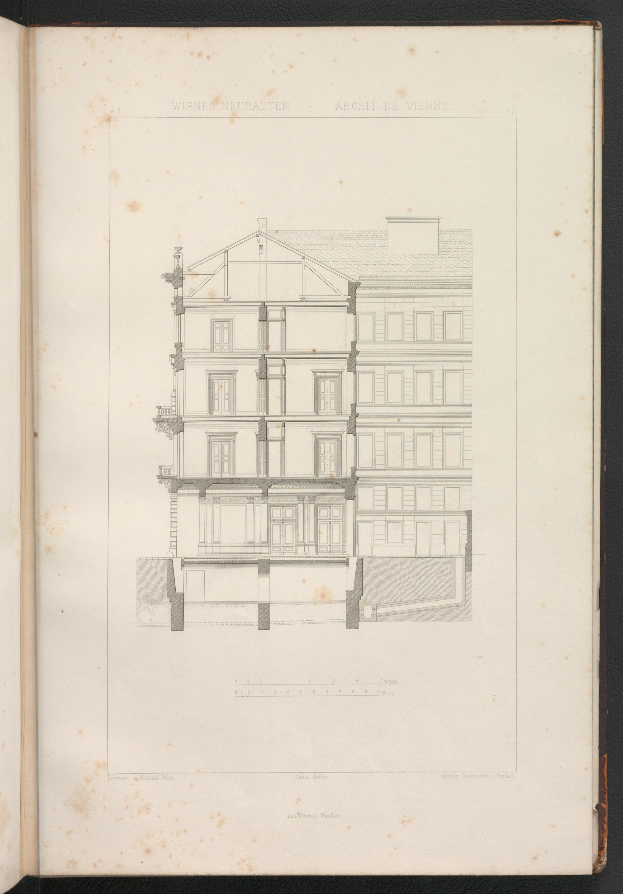 A,1 (1876) Wiener Neubauten / Hrsg. von Carl von Lützow und Ludwig Tischler. Unter Mitw. der Architekten: H. von Ferstel, E. & H. Förster, Th. von Hansen, Baron K. von Hasenauer ... . Gestochen unter der Leitung von Eduard Obermayer