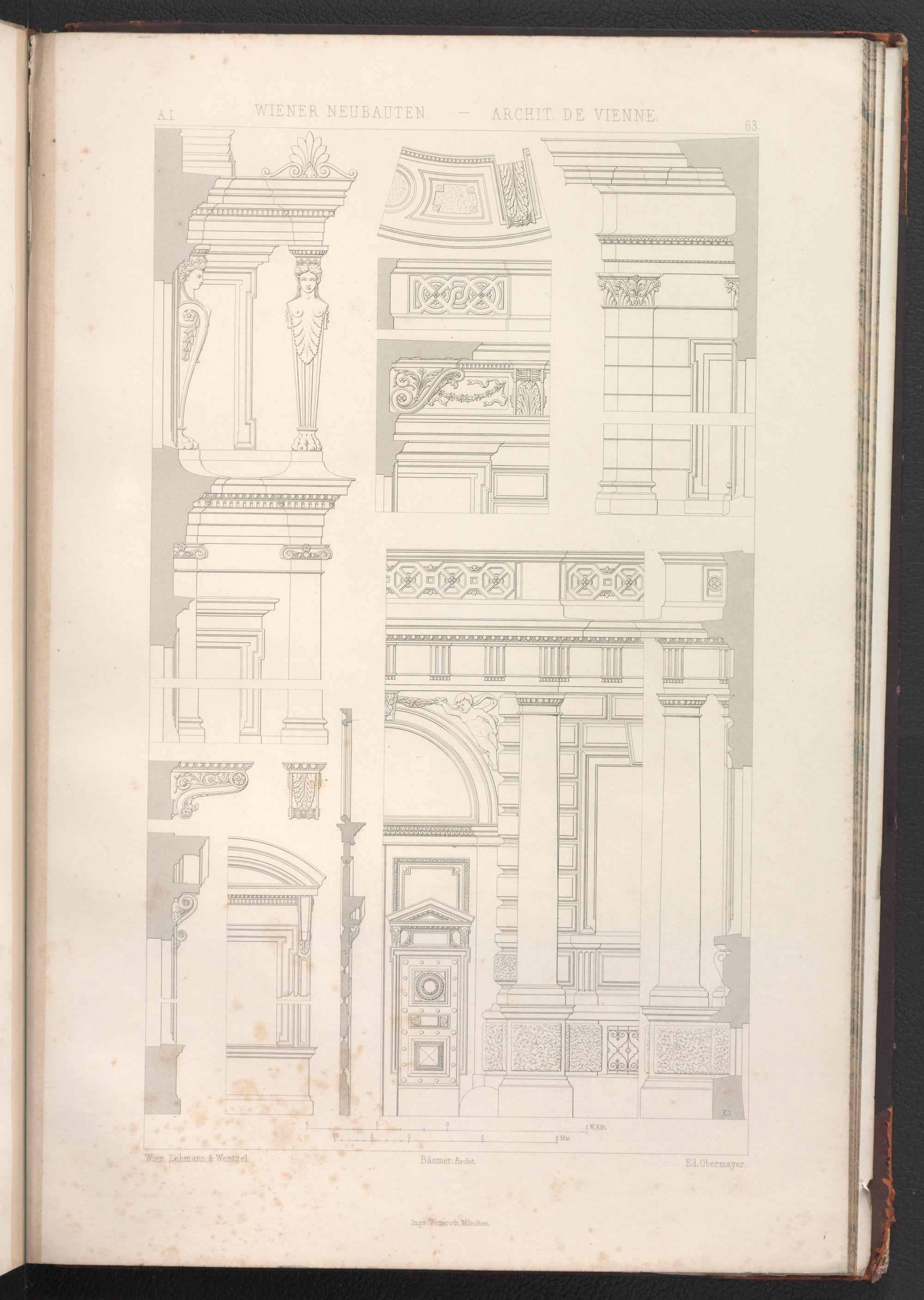 A,1 (1876) Wiener Neubauten / Hrsg. von Carl von Lützow und Ludwig Tischler. Unter Mitw. der Architekten: H. von Ferstel, E. & H. Förster, Th. von Hansen, Baron K. von Hasenauer ... . Gestochen unter der Leitung von Eduard Obermayer
