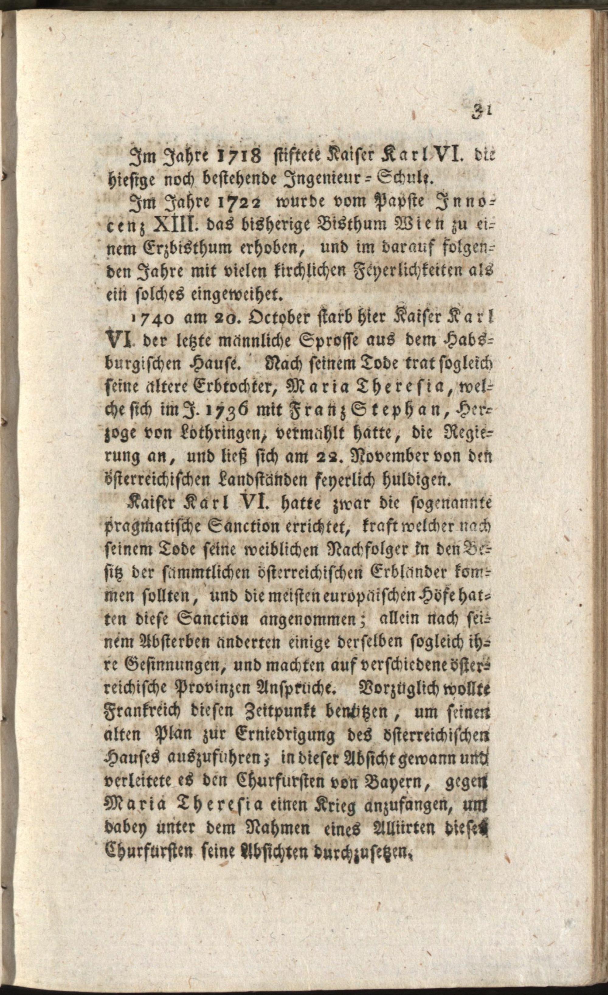 Neueste Beschreibung der Kais. Kön. Haupt- und Residenzstadt Wien, und der in der Gegend derselben befindlichen kaiserl. königl. Lustschlösser, Gärten, anderer vorzüglicher Gebäude, Kunst- und Naturmerkwürdigkeiten : Nebst kurzgefaßter Geschichte ihres ältern und neuern Zustandes ; Mit dem in Kupfer gestochenen Grundrisse der Stadt und ihrer Vorstädte