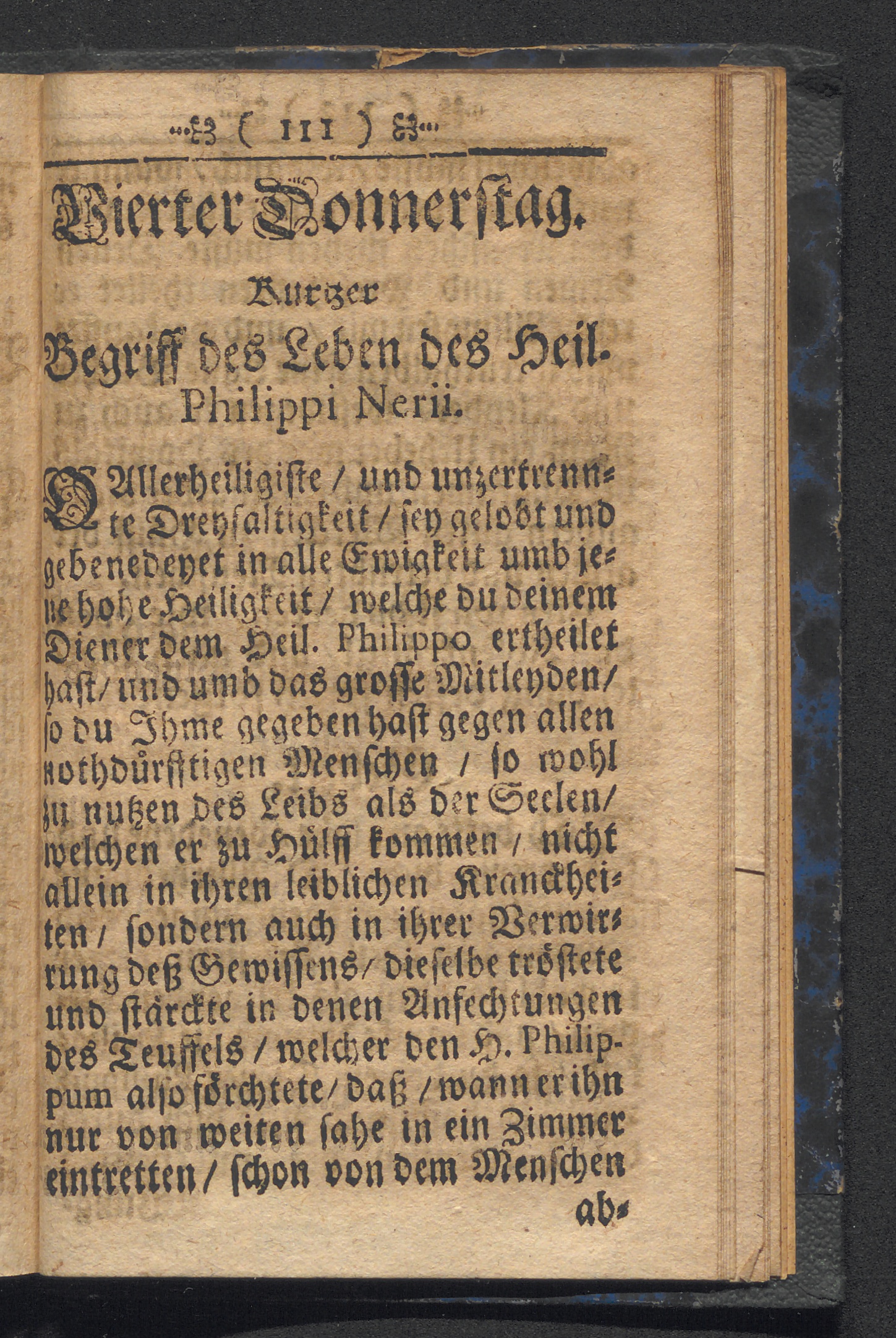 Neu - dargereichter Philippinischer Liebs-faden Krafft welchen die Christ-Glaubige durch einen frommen Lebens-Wandel zu einem glückseeligen Lebens-Außgang geleitet werden : Oder Kurtze Verzeichnuß der Löbl. Bruderschafft des Heiligen Philippi Nerii