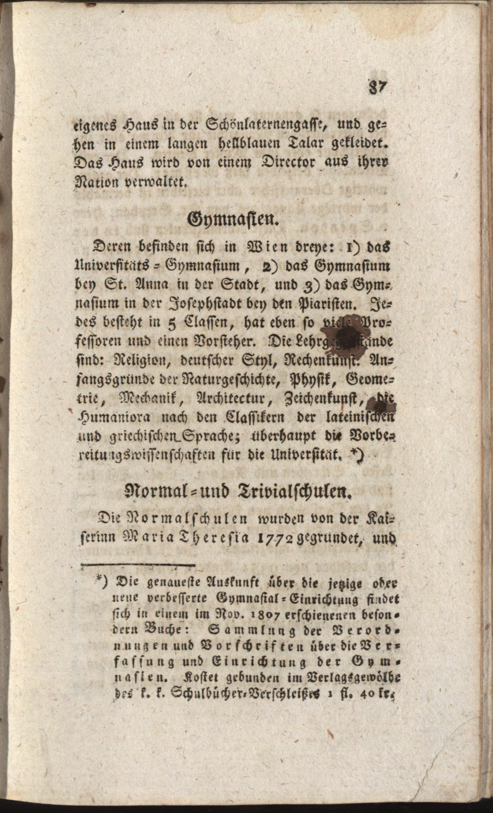 Neueste Beschreibung der Kais. Kön. Haupt- und Residenzstadt Wien, und der in der Gegend derselben befindlichen kaiserl. königl. Lustschlösser, Gärten, anderer vorzüglicher Gebäude, Kunst- und Naturmerkwürdigkeiten : Nebst kurzgefaßter Geschichte ihres ältern und neuern Zustandes ; Mit dem in Kupfer gestochenen Grundrisse der Stadt und ihrer Vorstädte