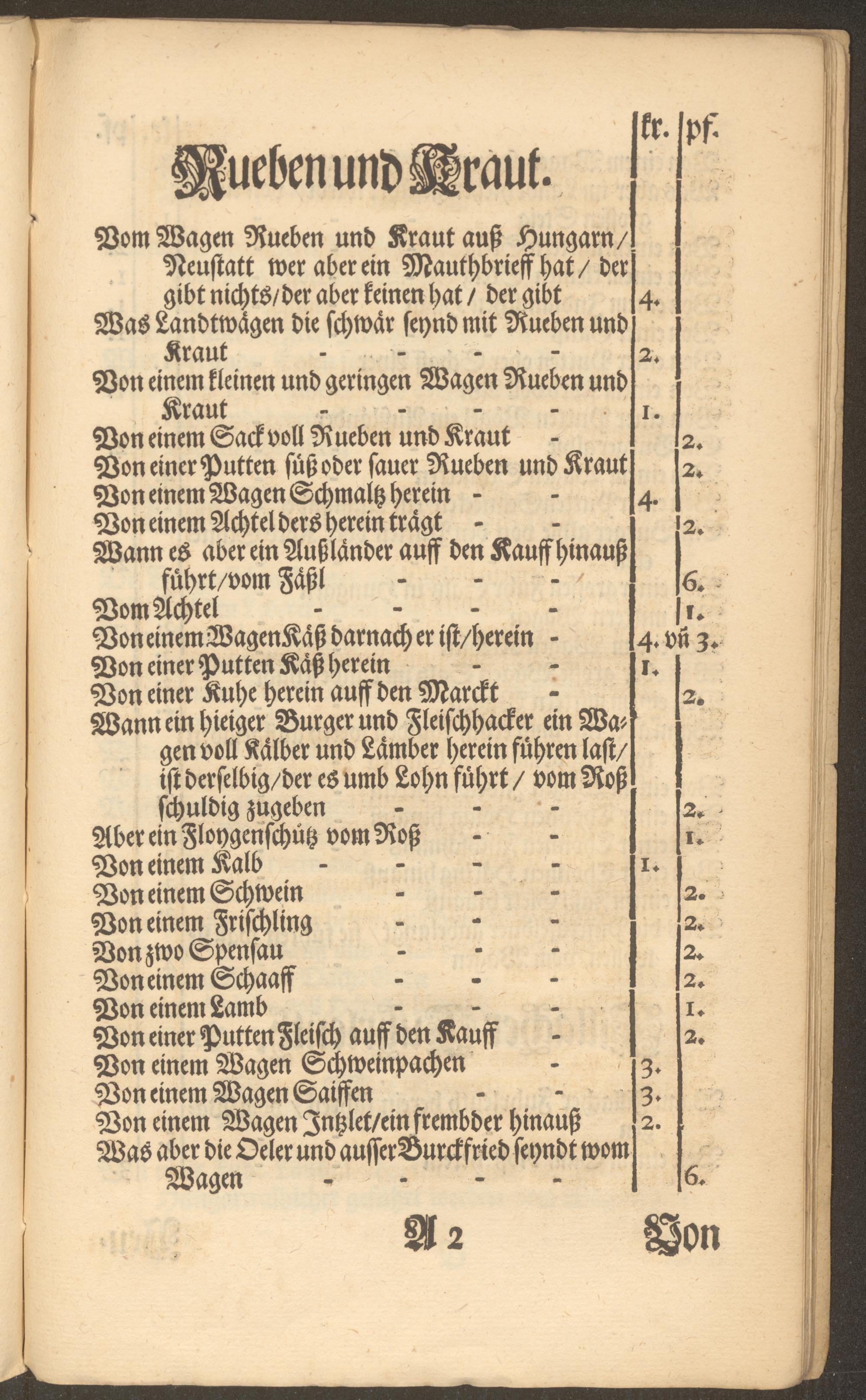 Röm. KAyserl. Auch zu Hungarn und Böheimb, [et]c. Königl. Majestät, Ertz-Hertzogen zu Oesterreich, [et]c. Neu Confirmirtes Mauth-Vectigal, Dero Kayserl. Haubt- und Residentz-Stadt Wienn gehörig