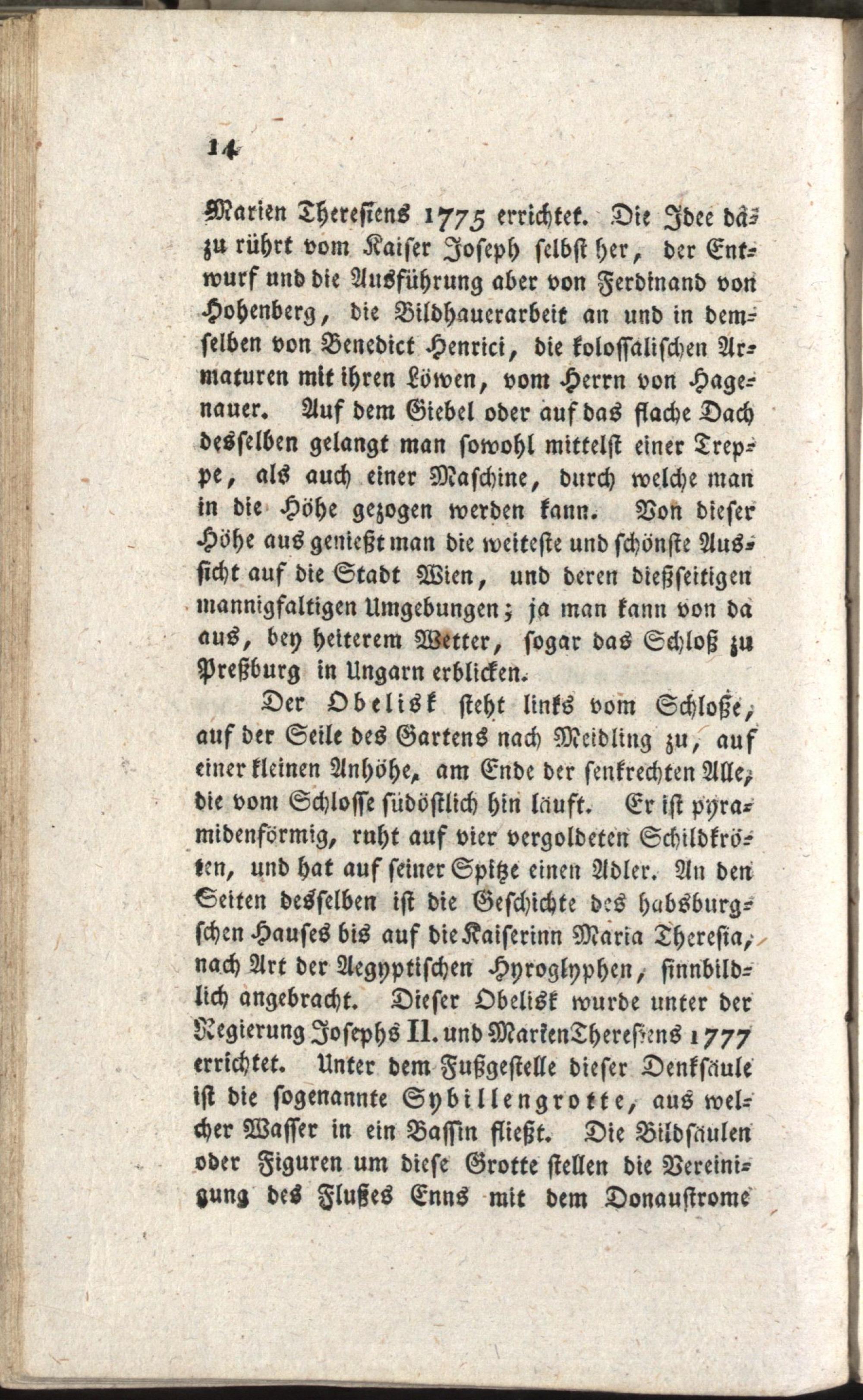Neueste Beschreibung der Kais. Kön. Haupt- und Residenzstadt Wien, und der in der Gegend derselben befindlichen kaiserl. königl. Lustschlösser, Gärten, anderer vorzüglicher Gebäude, Kunst- und Naturmerkwürdigkeiten : Nebst kurzgefaßter Geschichte ihres ältern und neuern Zustandes ; Mit dem in Kupfer gestochenen Grundrisse der Stadt und ihrer Vorstädte