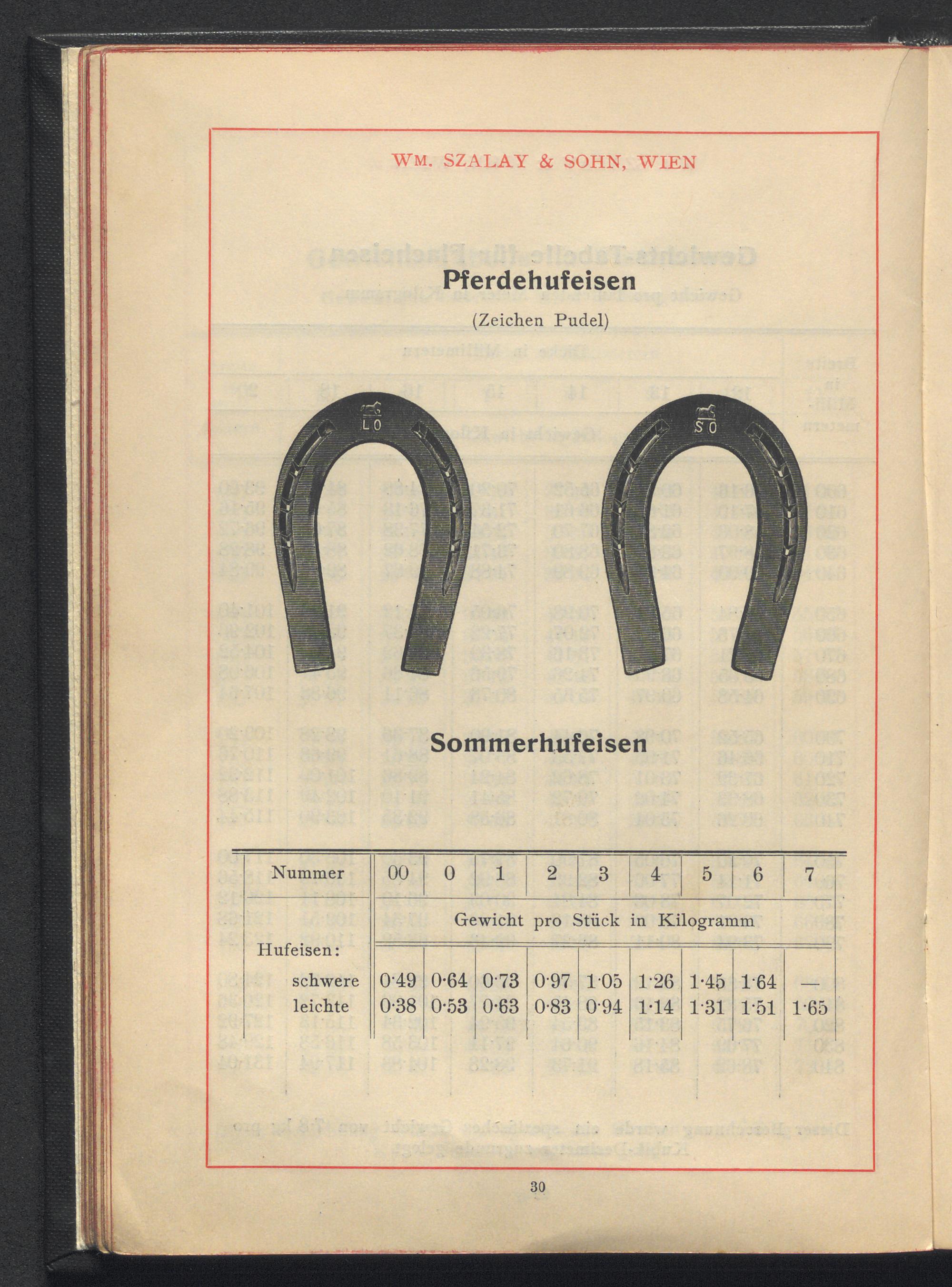 Profilzeichnungen und Tabellen / Wm. Szalay & Sohn, Wien III/4, Mohsgasse Nr. 30