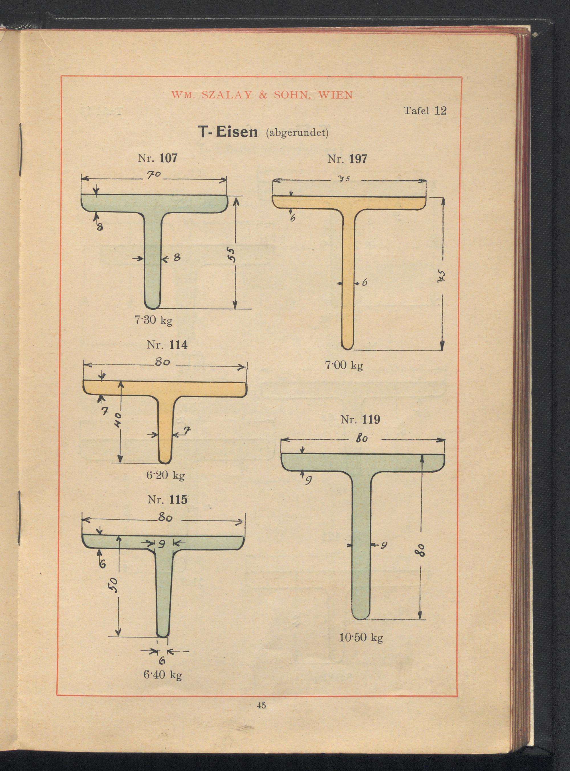 Profilzeichnungen und Tabellen / Wm. Szalay & Sohn, Wien III/4, Mohsgasse Nr. 30