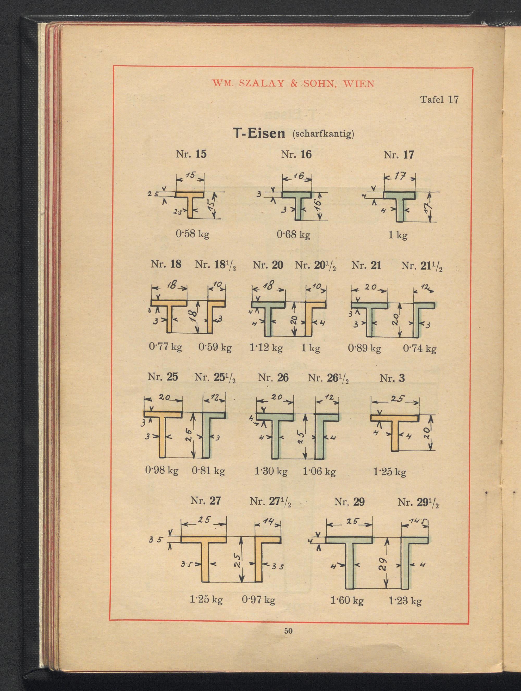 Profilzeichnungen und Tabellen / Wm. Szalay & Sohn, Wien III/4, Mohsgasse Nr. 30