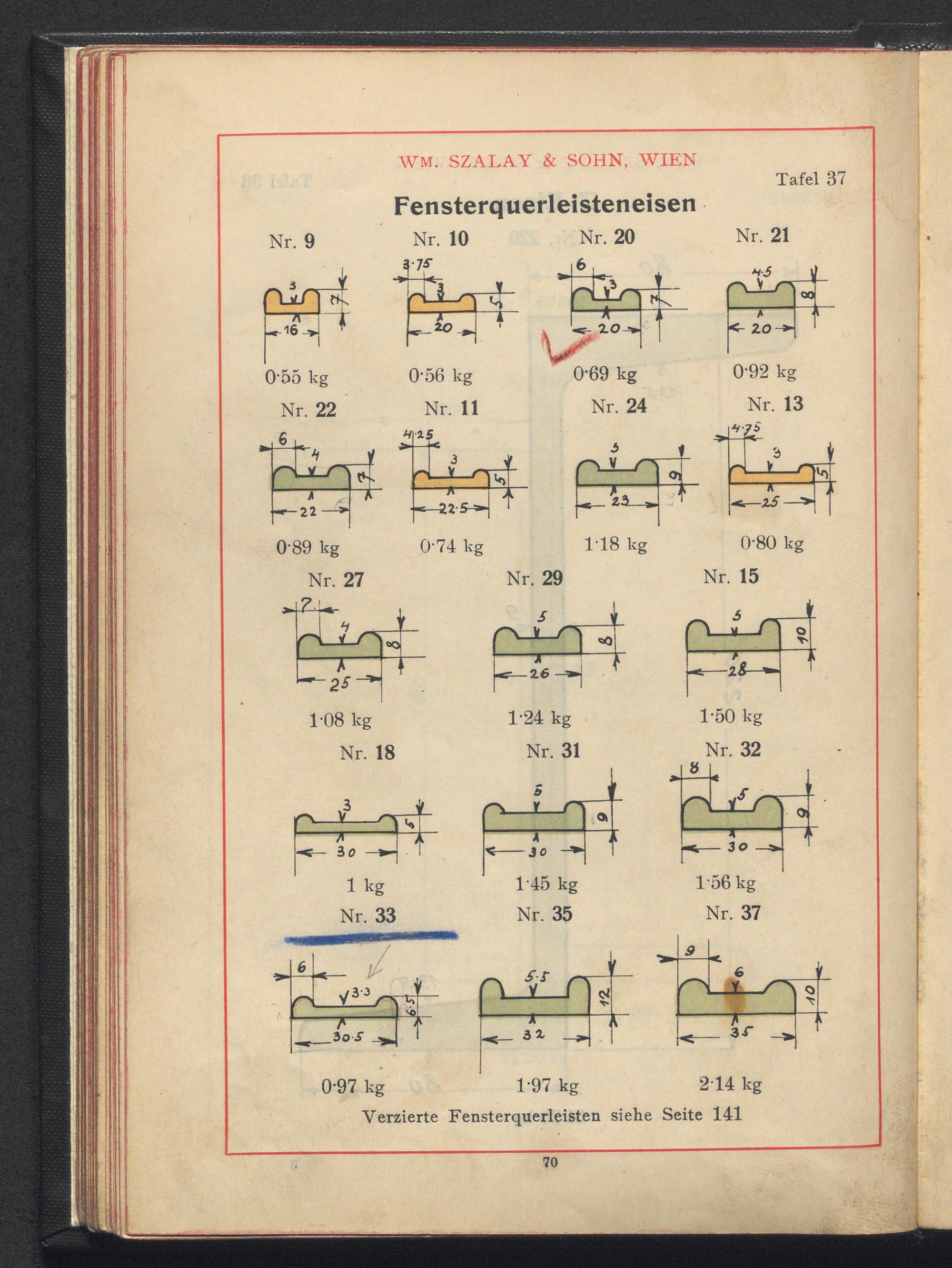 Profilzeichnungen und Tabellen / Wm. Szalay & Sohn, Wien III/4, Mohsgasse Nr. 30