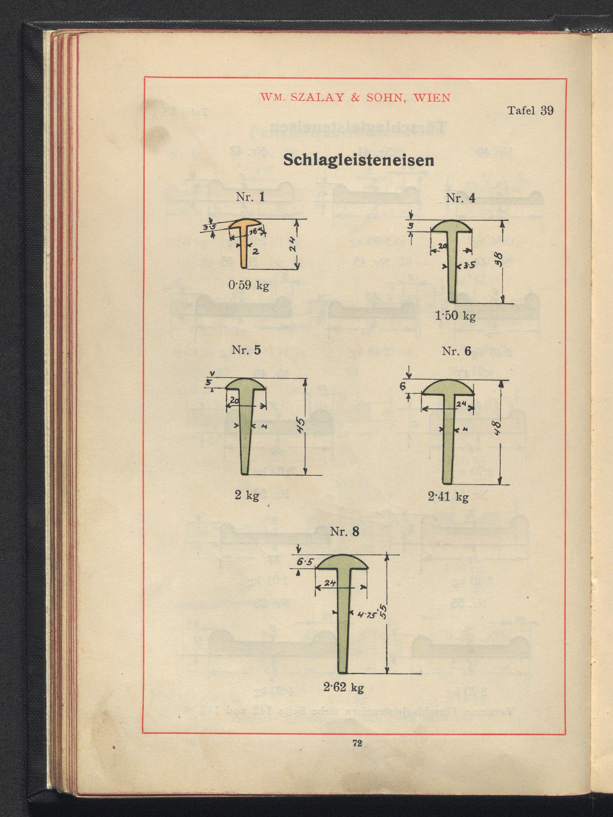 Profilzeichnungen und Tabellen / Wm. Szalay & Sohn, Wien III/4, Mohsgasse Nr. 30