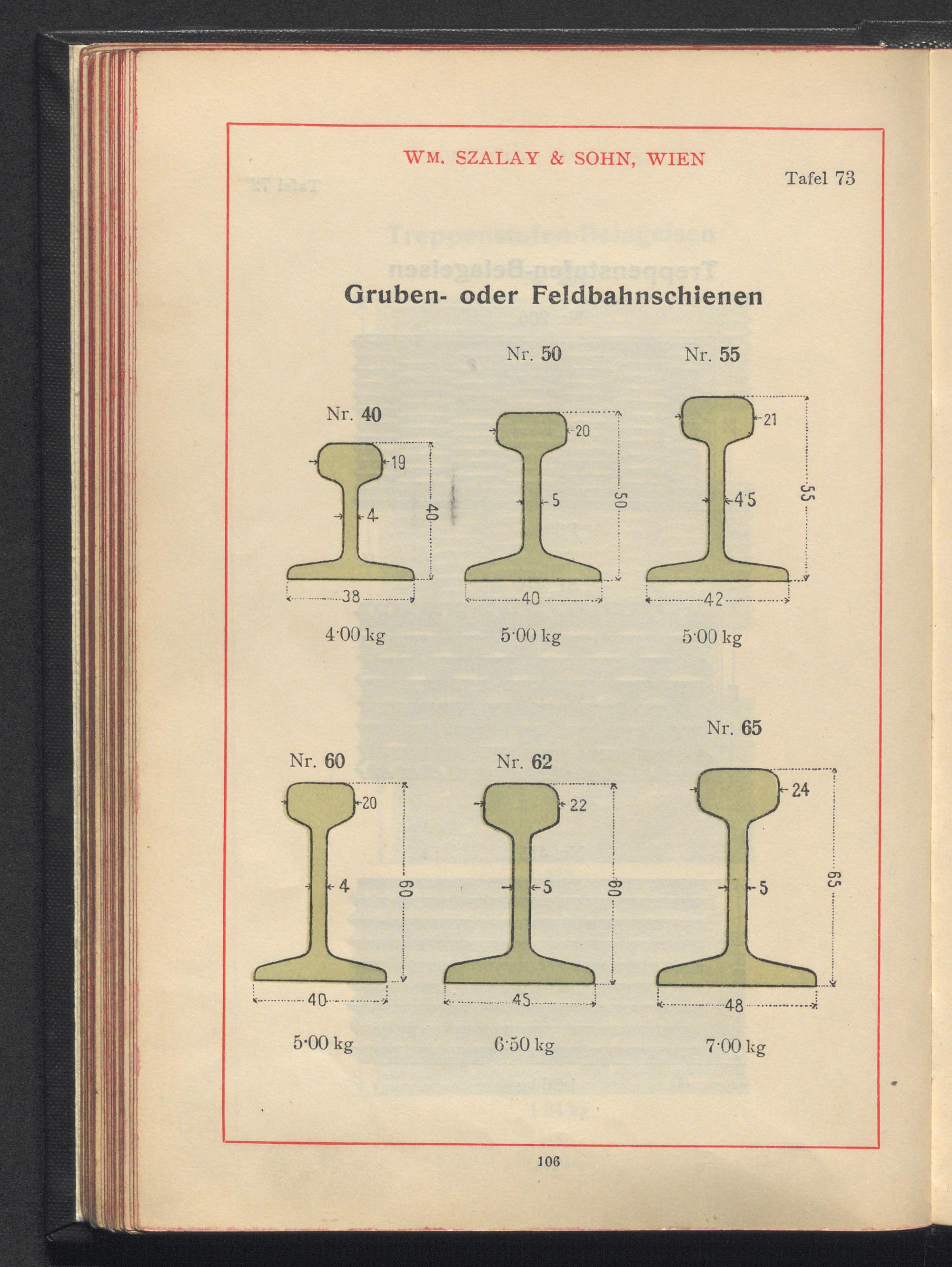 Profilzeichnungen und Tabellen / Wm. Szalay & Sohn, Wien III/4, Mohsgasse Nr. 30