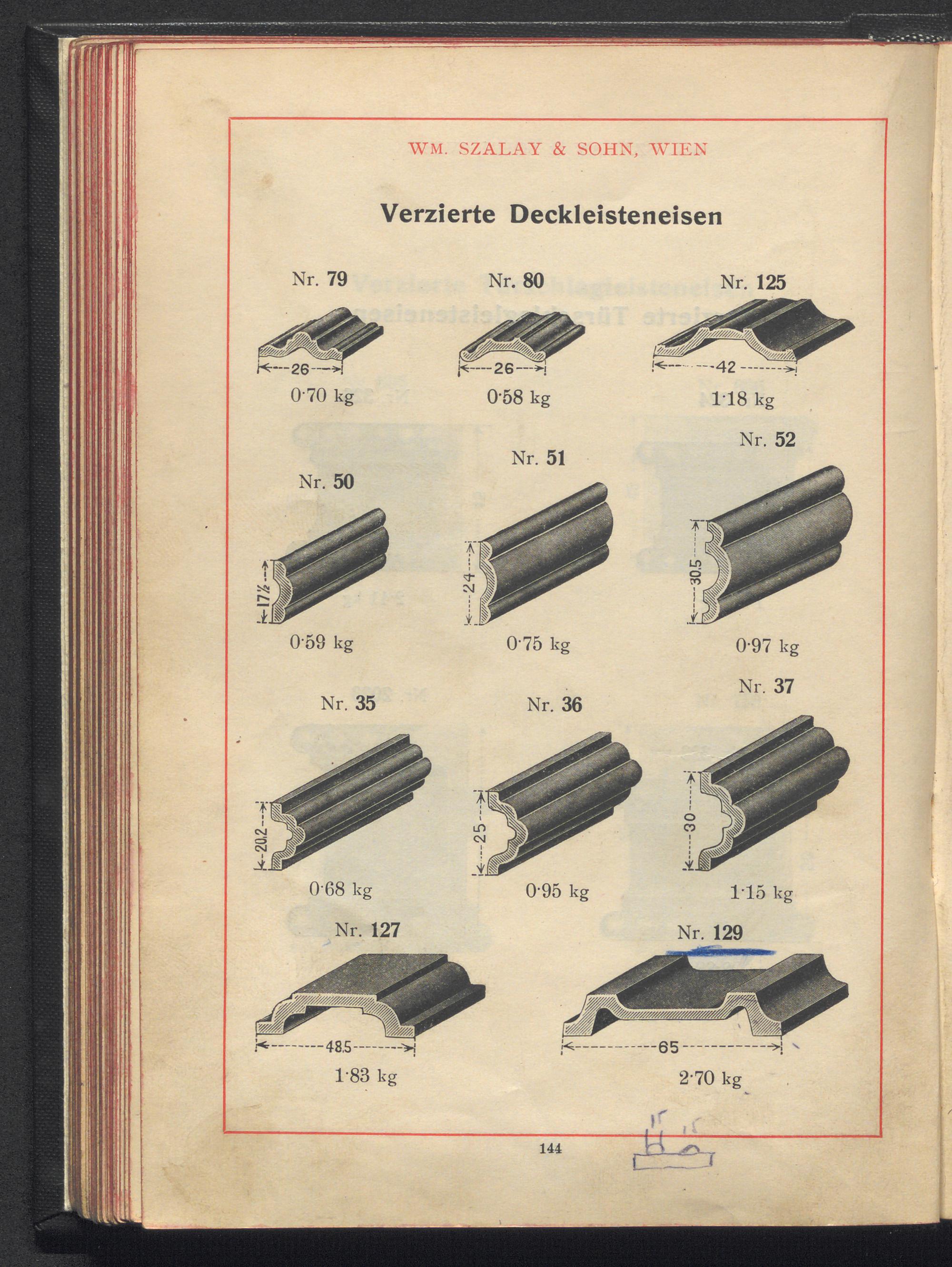 Profilzeichnungen und Tabellen / Wm. Szalay & Sohn, Wien III/4, Mohsgasse Nr. 30