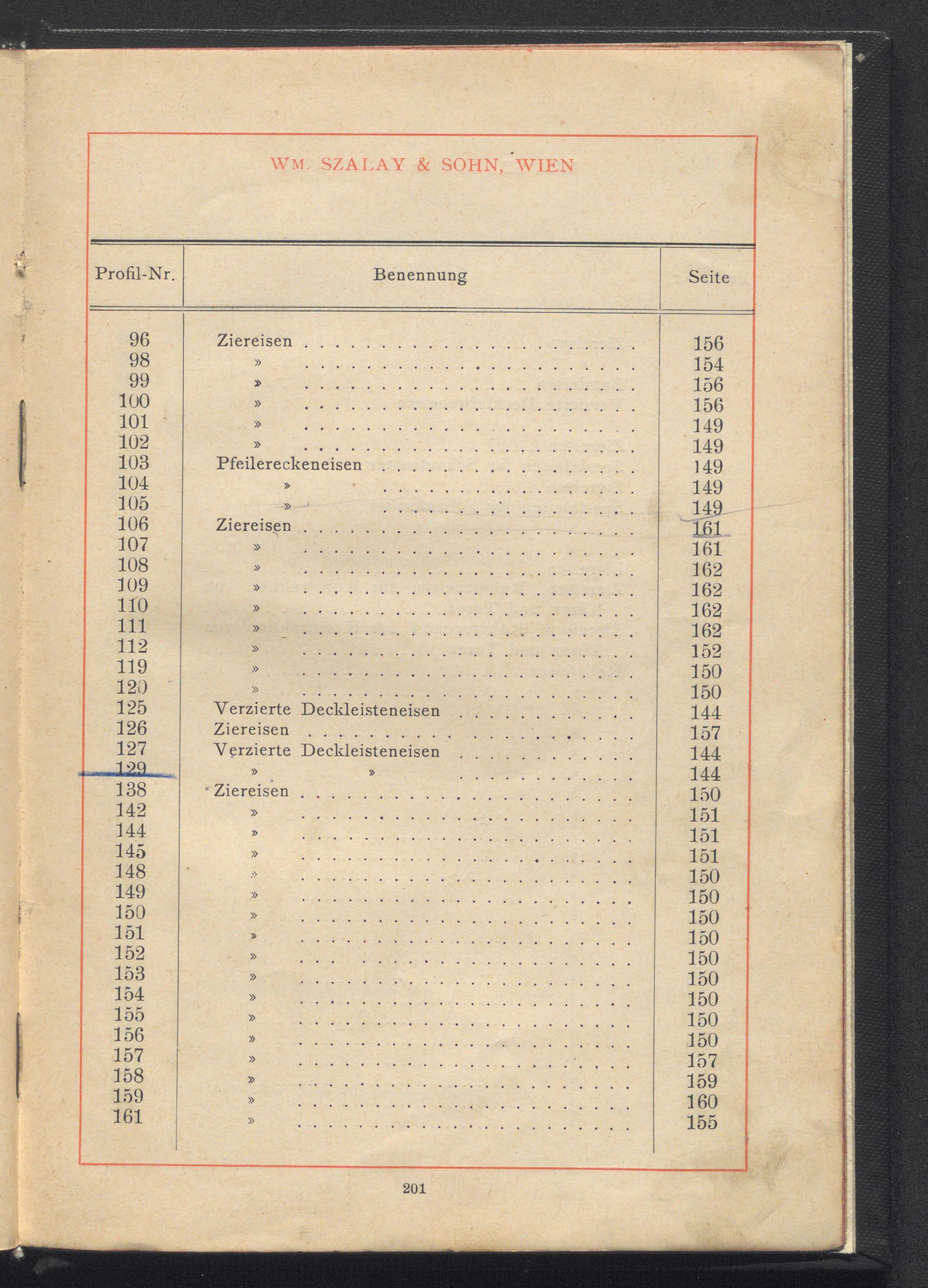 Profilzeichnungen und Tabellen / Wm. Szalay & Sohn, Wien III/4, Mohsgasse Nr. 30