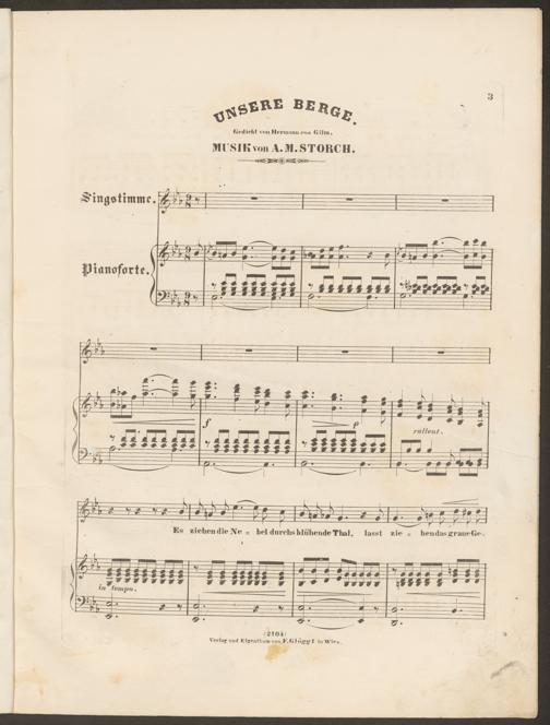 Unsere Berge : Lied ; für Singstimme und Klavier / von A. M. Storch; Gedicht von H. v. Gilm