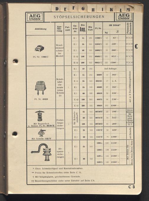 Preisliste über Installationsmaterial etc. / AEG-Union Elektrizitäts-Gesellschaft