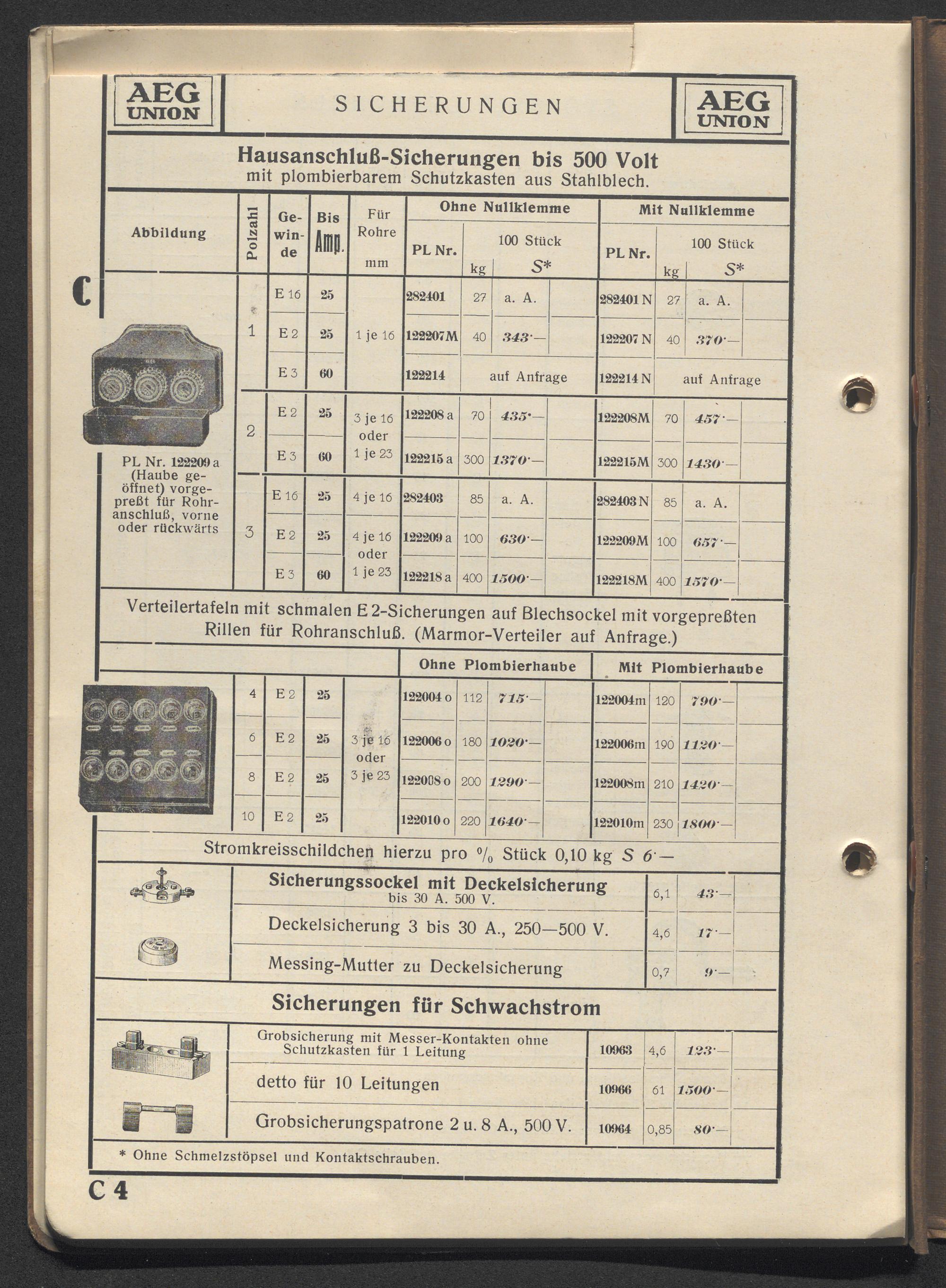 Preisliste über Installationsmaterial etc. / AEG-Union Elektrizitäts-Gesellschaft