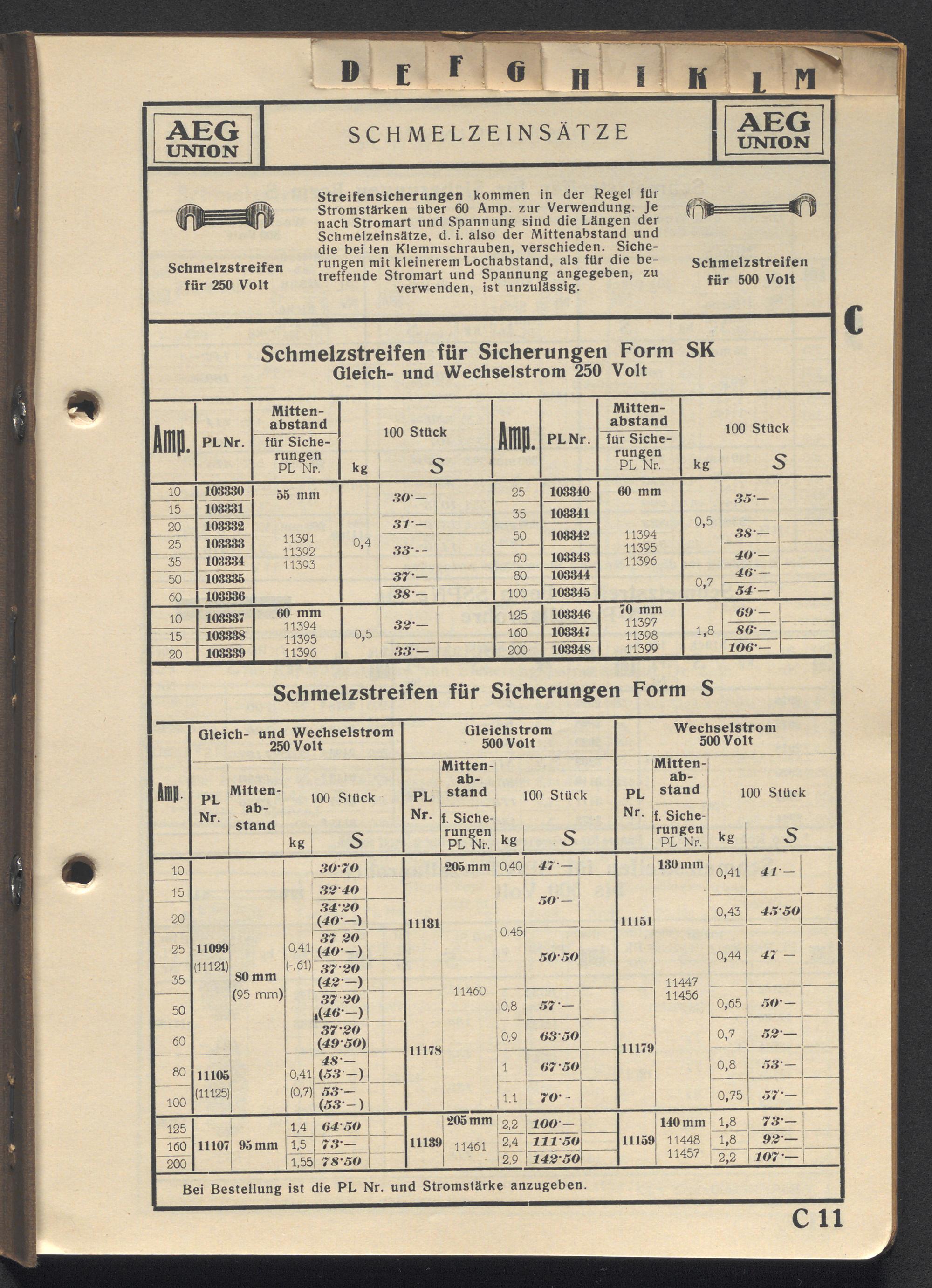 Preisliste über Installationsmaterial etc. / AEG-Union Elektrizitäts-Gesellschaft