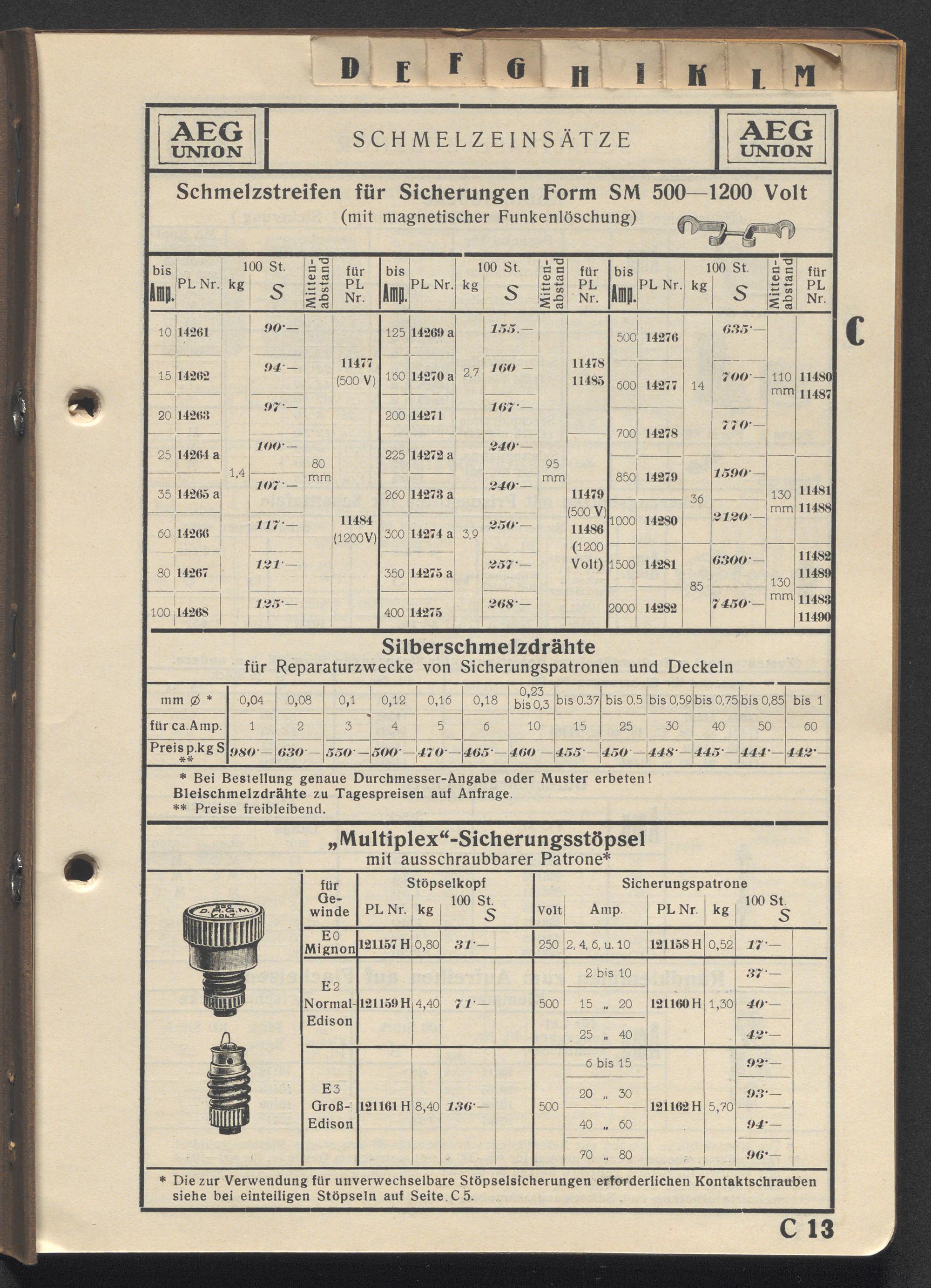 Preisliste über Installationsmaterial etc. / AEG-Union Elektrizitäts-Gesellschaft