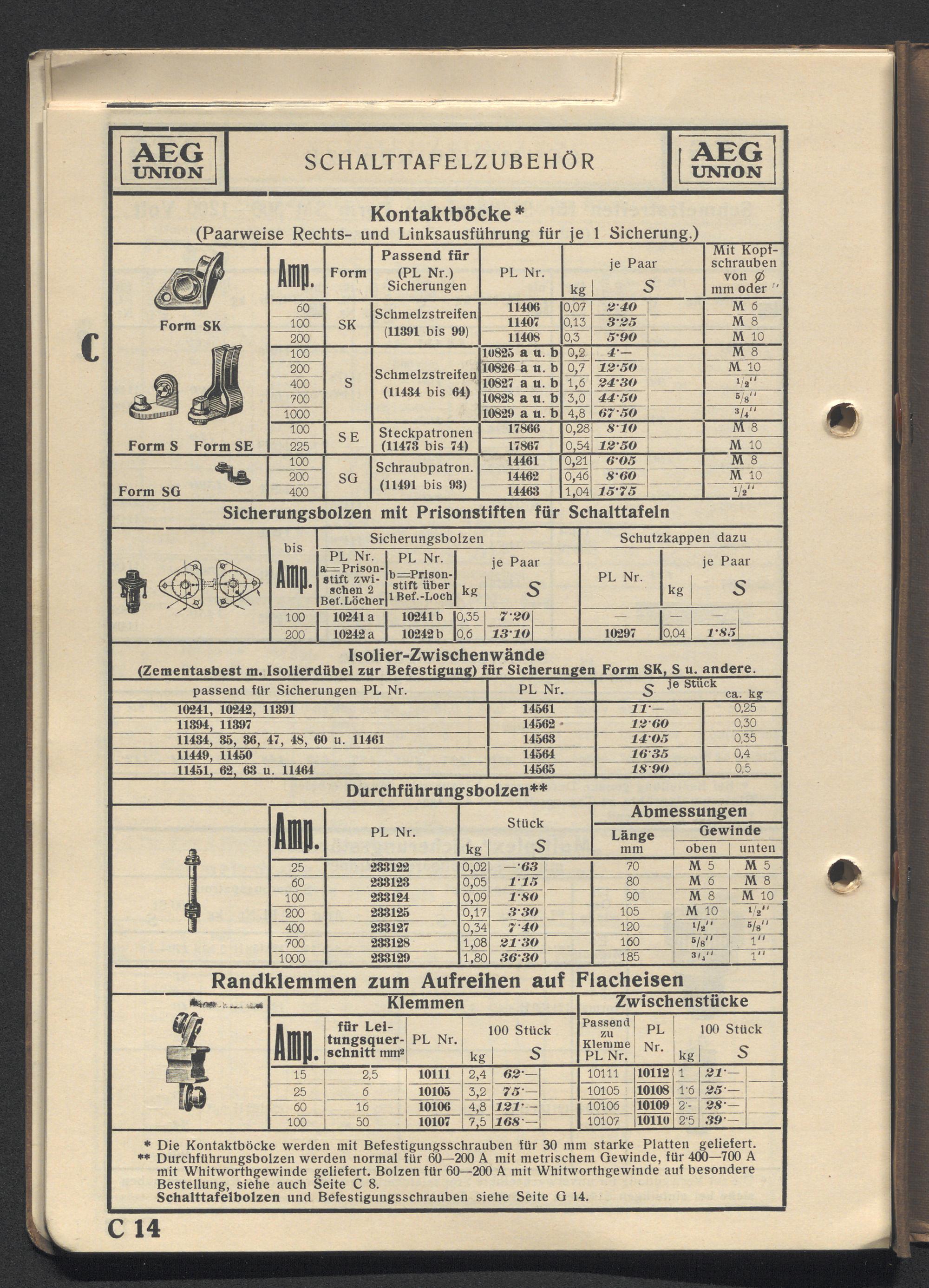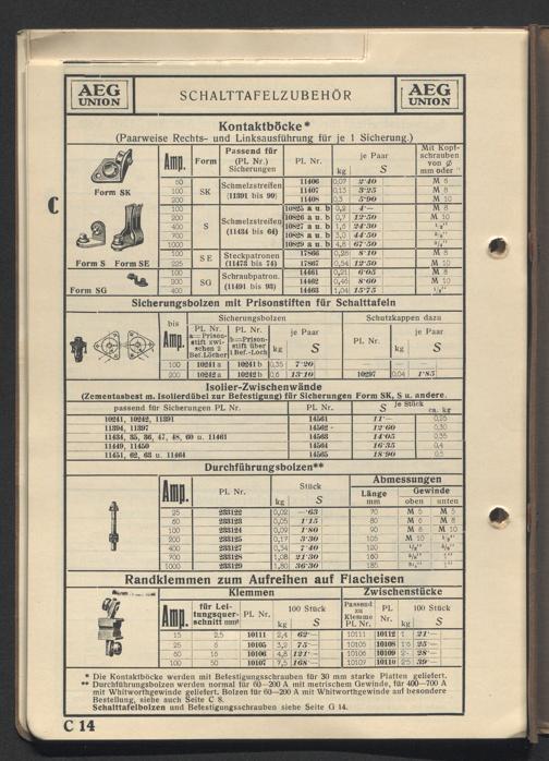 Preisliste über Installationsmaterial etc. / AEG-Union Elektrizitäts-Gesellschaft