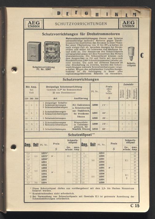 Preisliste über Installationsmaterial etc. / AEG-Union Elektrizitäts-Gesellschaft