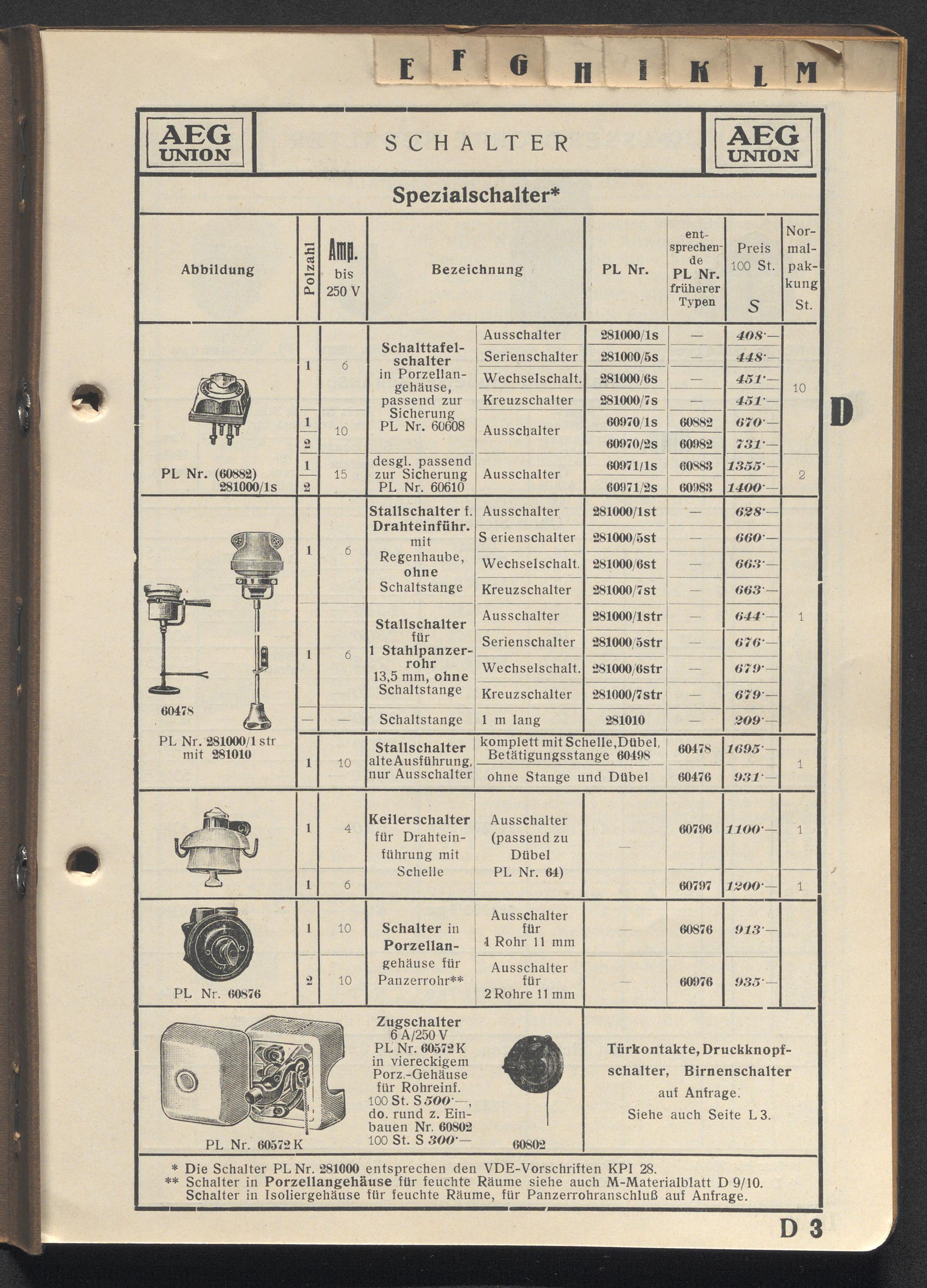 Preisliste über Installationsmaterial etc. / AEG-Union Elektrizitäts-Gesellschaft