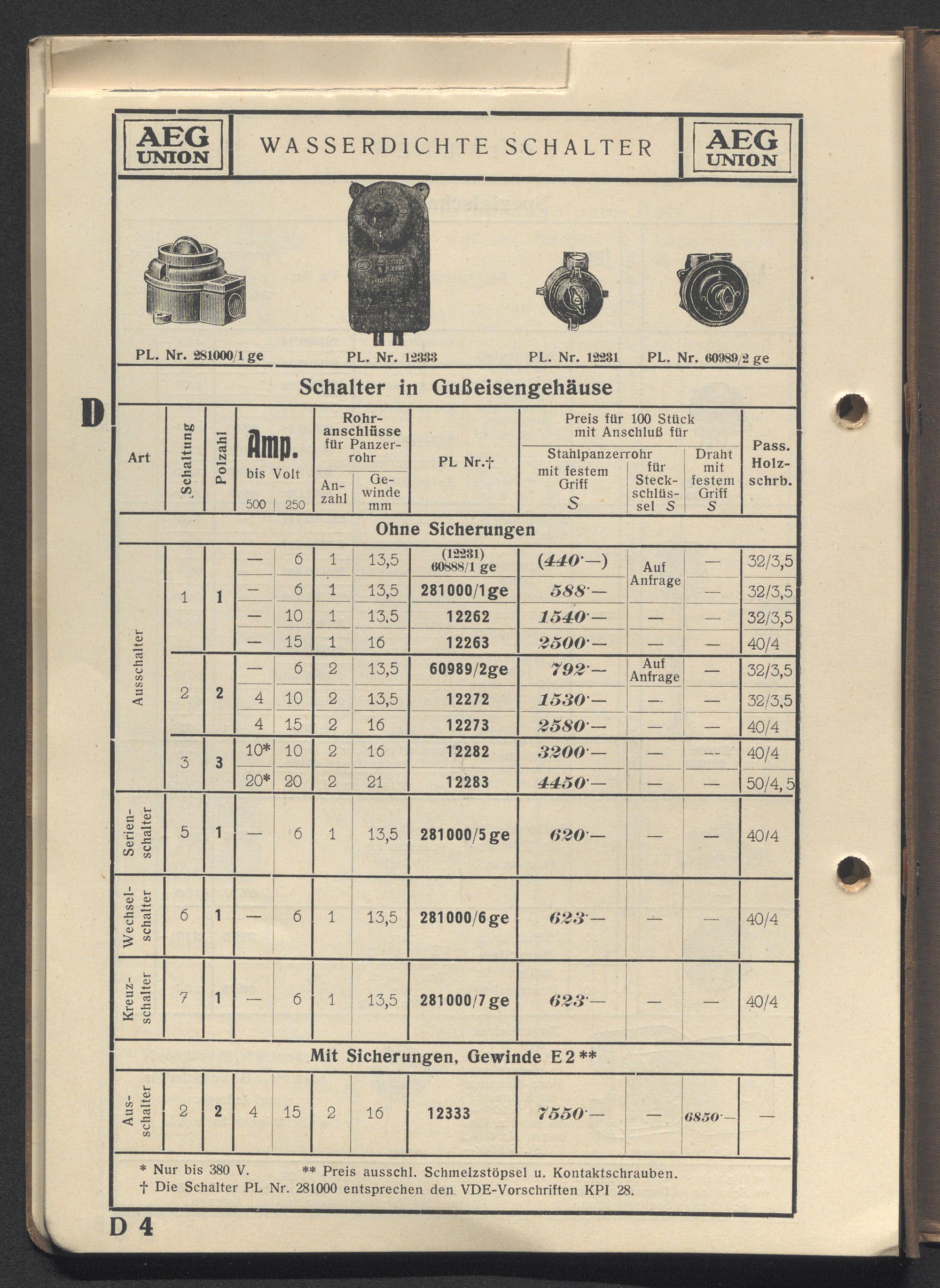 Preisliste über Installationsmaterial etc. / AEG-Union Elektrizitäts-Gesellschaft